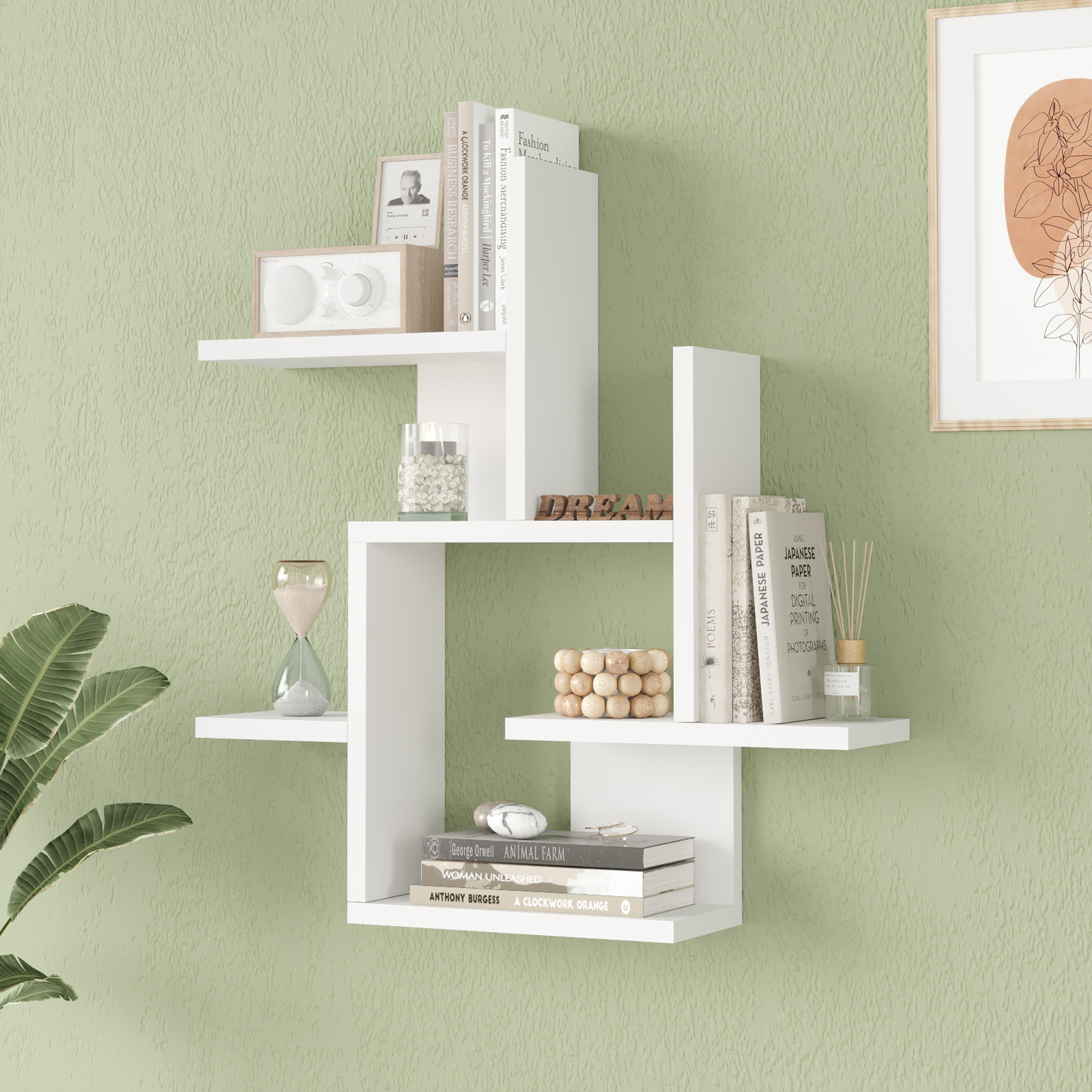 Raftul de perete Reyna este o alegere inspirata pentru amenajarea moderna a casei, oferind un echilibru foarte bun intre aspect decorativ si spatiu util de depozitare. Cu un design geometric elegant si finisaj alb versatil, acest raft de perete alb se integreaza usor in living, dormitor, hol, birou, baie sau chiar in bucatarie.