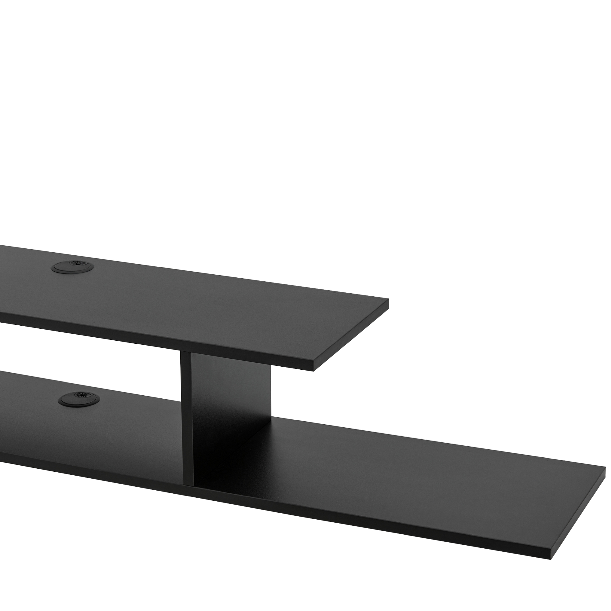 Raftul de perete cu 4 suprafete pentru depozitare este versatil. Se monteaza simplu si rapid pe perete si este ideal pentru depozitarea dispozitivelor media sau a acceosriilor pentru TV. Cele 2 orificii discrete pentru dirijarea ordonata a cablurilor asigura aspectul ordonat al sufrageriei.