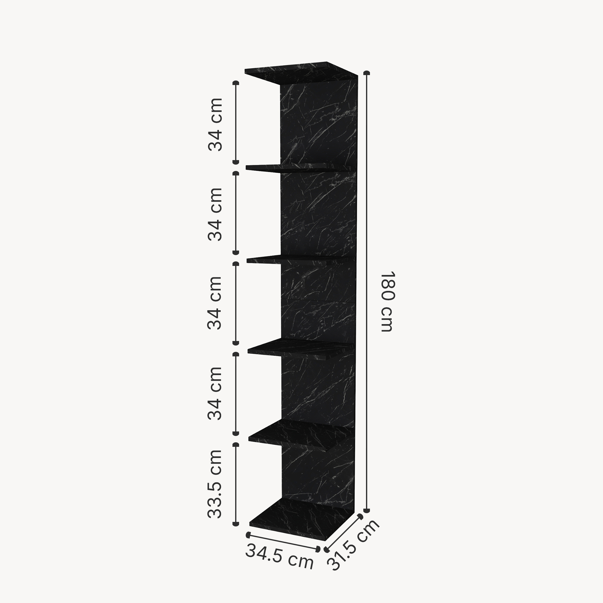 Raftul de perete Surahammar este alegerea ideală dacă îți dorești un corp de mobilier vertical, elegant și practic, care să pună în valoare spațiul din locuință. Cu un design modern, finisaj în aspect marmură neagră și șase polițe deschise, acest raft suspendat oferă loc suficient pentru cărți, plante, rame foto și decorațiuni.