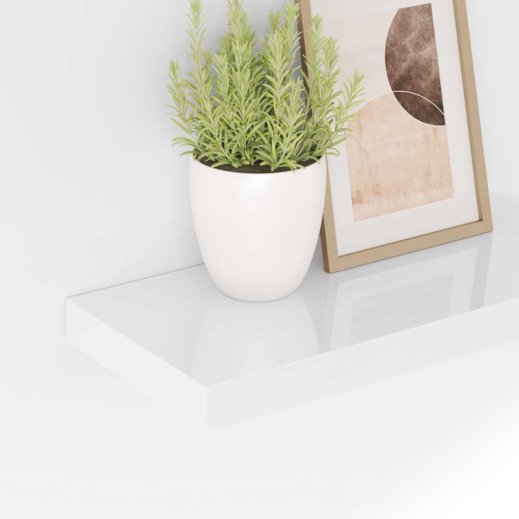 Raft de perete suspendat, alb extralucios, 50x23x3,8 cm, MDF GartenMobel Dekor