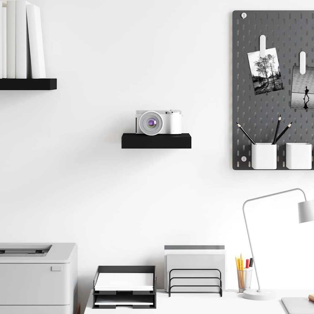 Raft de perete suspendat, negru, 23x23,5x3,8 cm, MDF GartenMobel Dekor