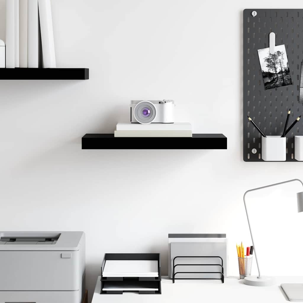 Raft de perete suspendat, negru extralucios, 50x23x3,8 cm, MDF GartenMobel Dekor