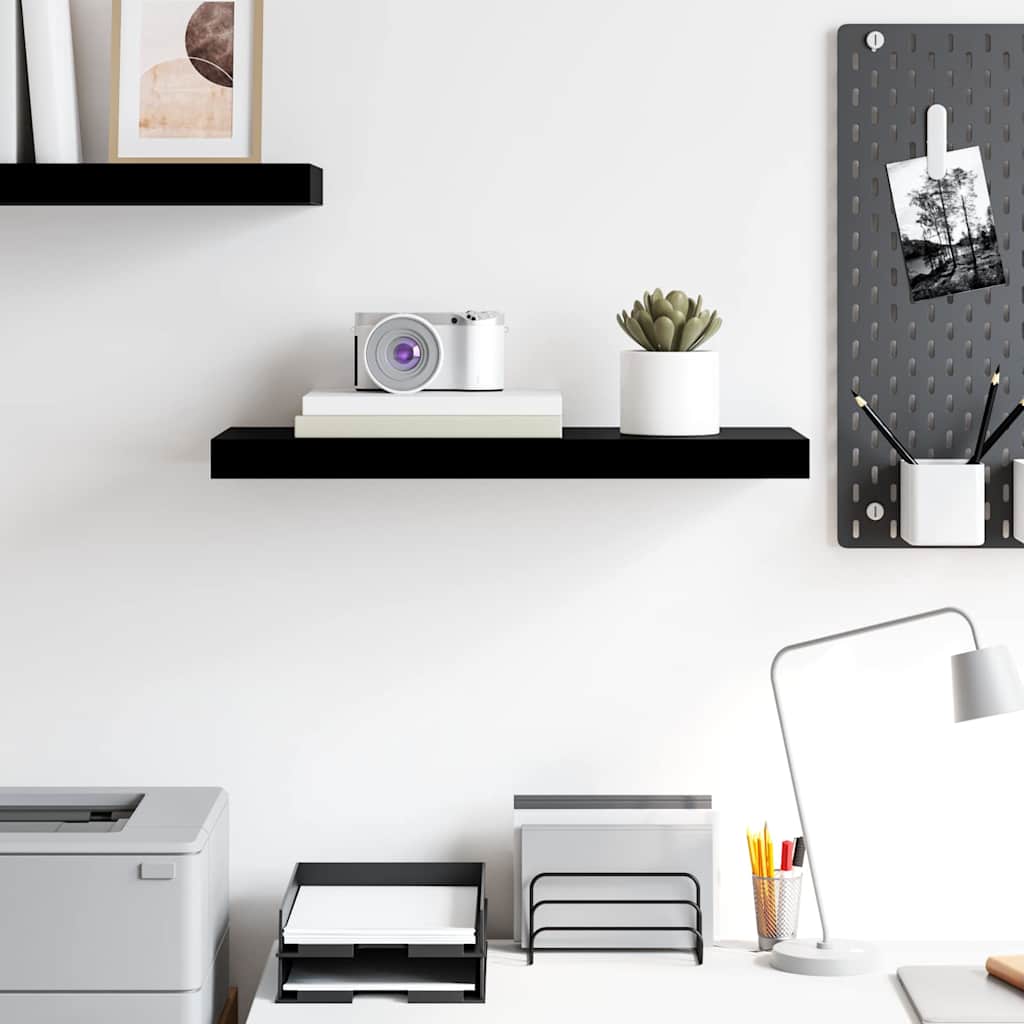 Raft de perete suspendat negru extralucios, 60x23,5x3,8 cm, MDF GartenMobel Dekor