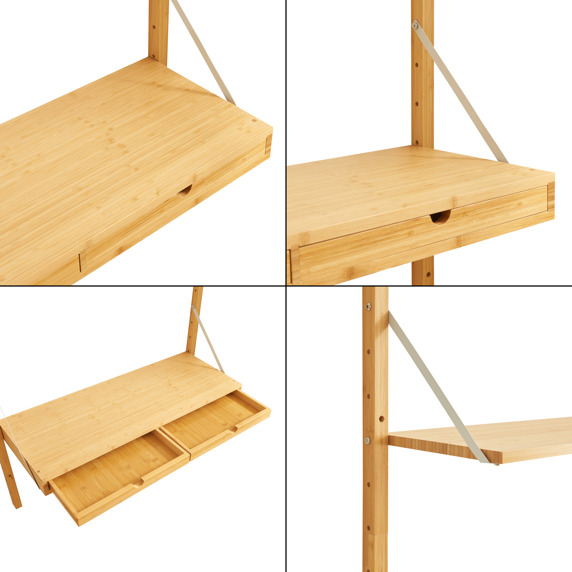 Raft de perete Tingvoll din bambus, cu 2 polițe și 2 sertare, 176x85 cm