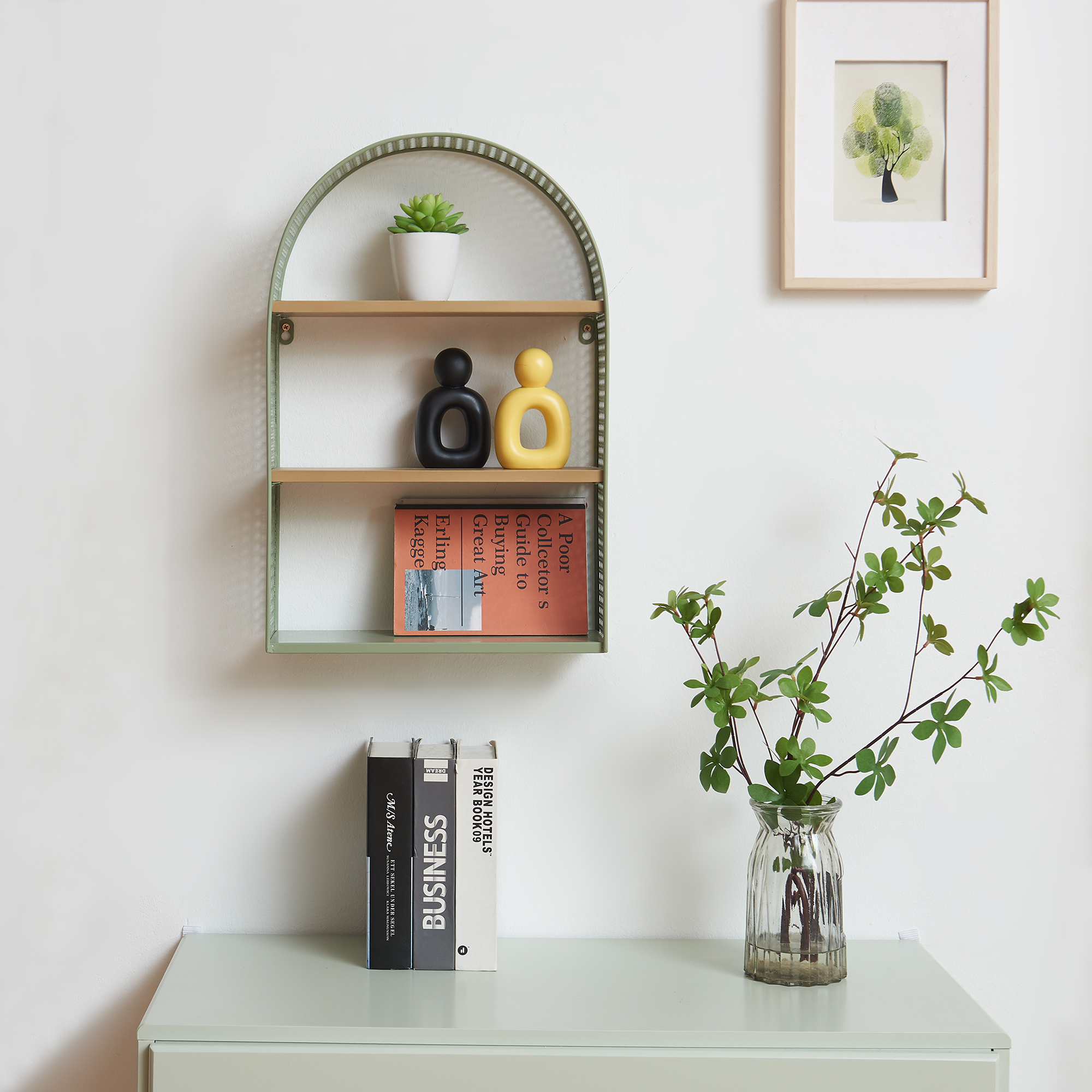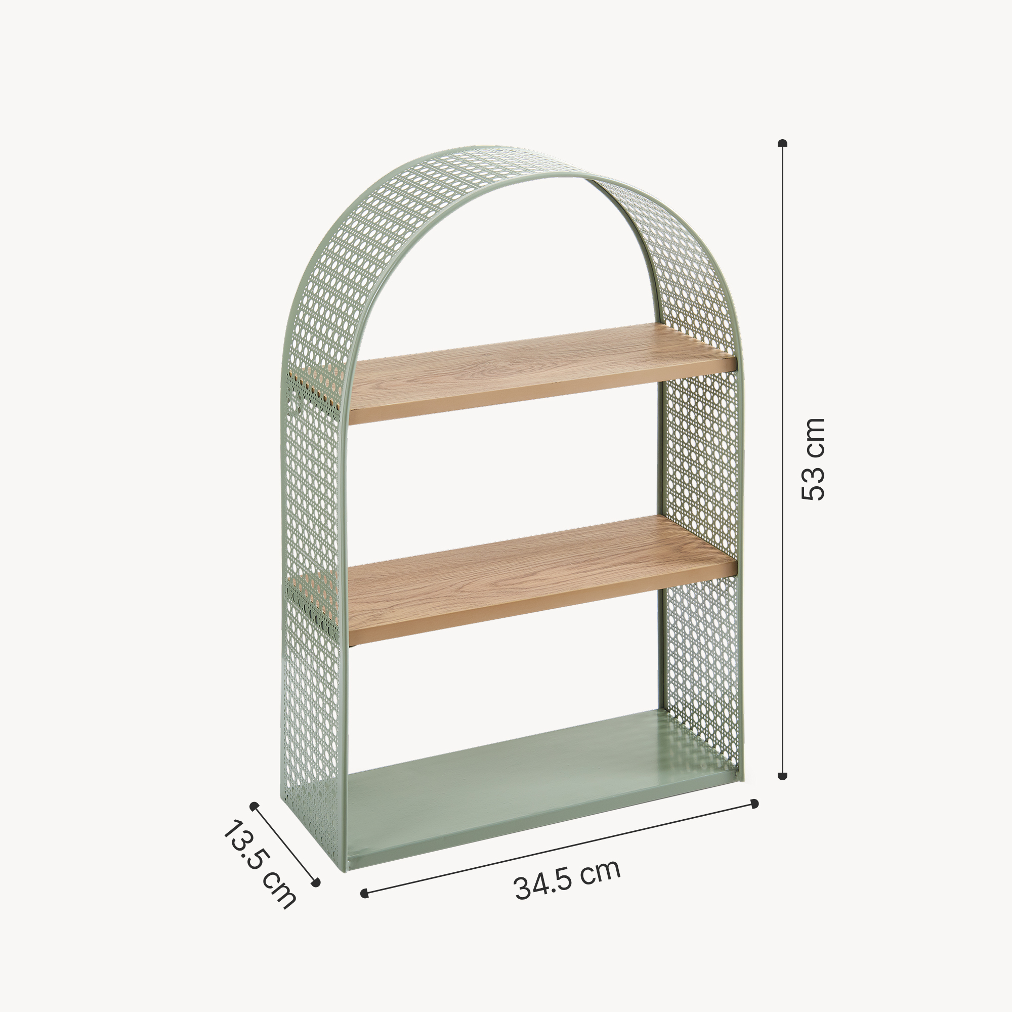 Raft de perete verde cu 3 polițe, design arcuit, 53x34,5x13,5 cm
