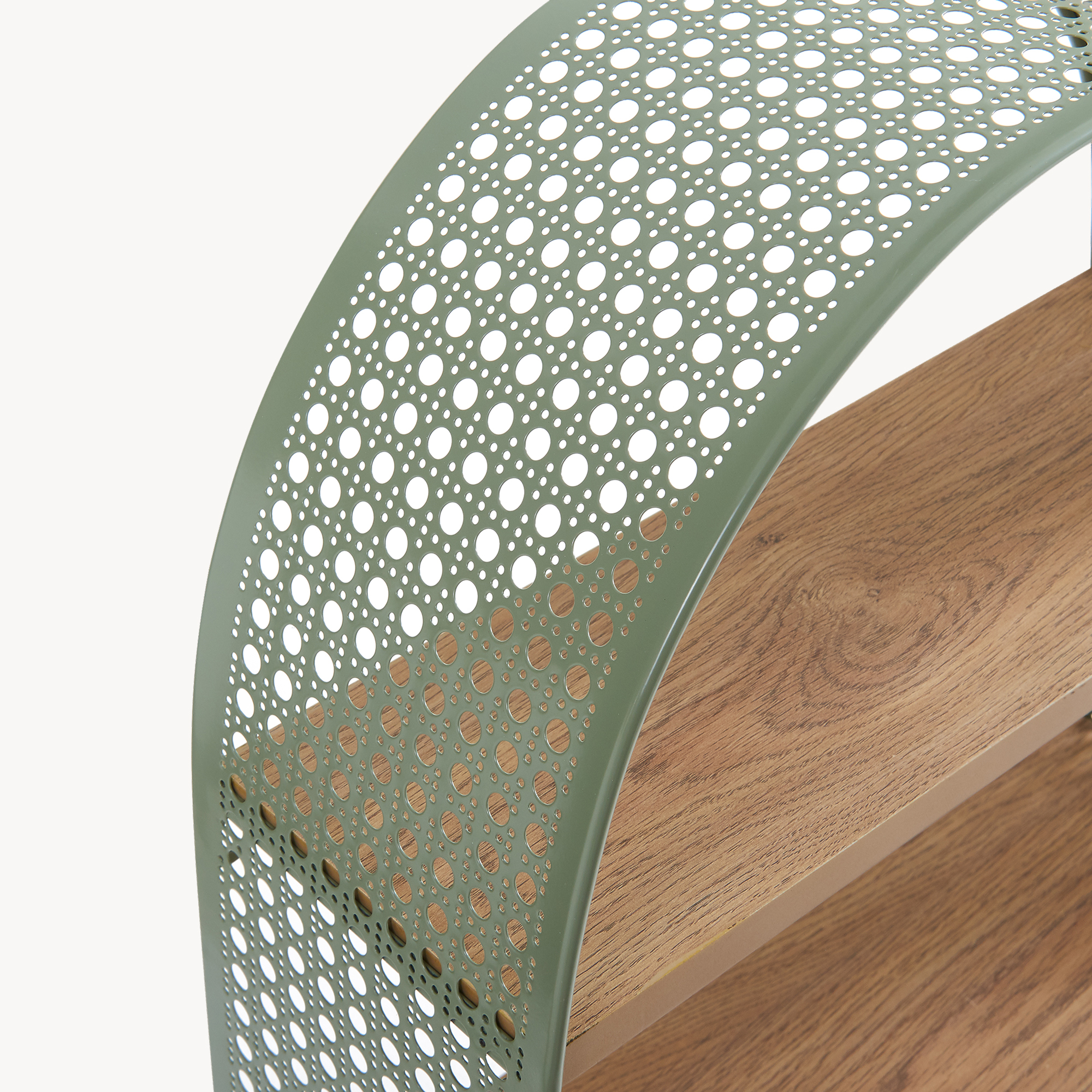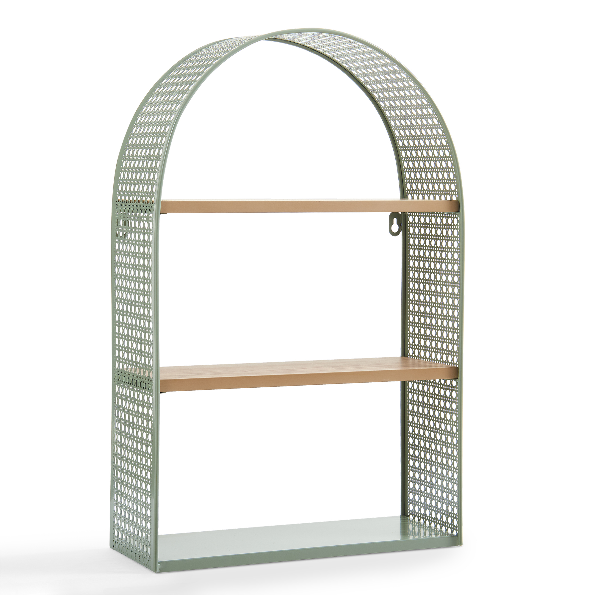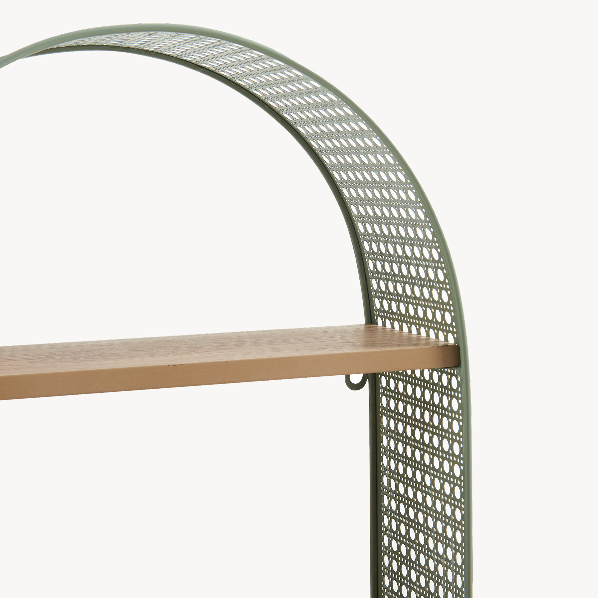Raftul de perete este alegerea ideală dacă îți dorești un plus de stil și organizare în locuință. Cu un design elegant, formă arcuită și laterale perforate cu aspect de ratan, acest raft de perete verde adaugă un accent decorativ plăcut în living, baie, bucătărie sau hol.