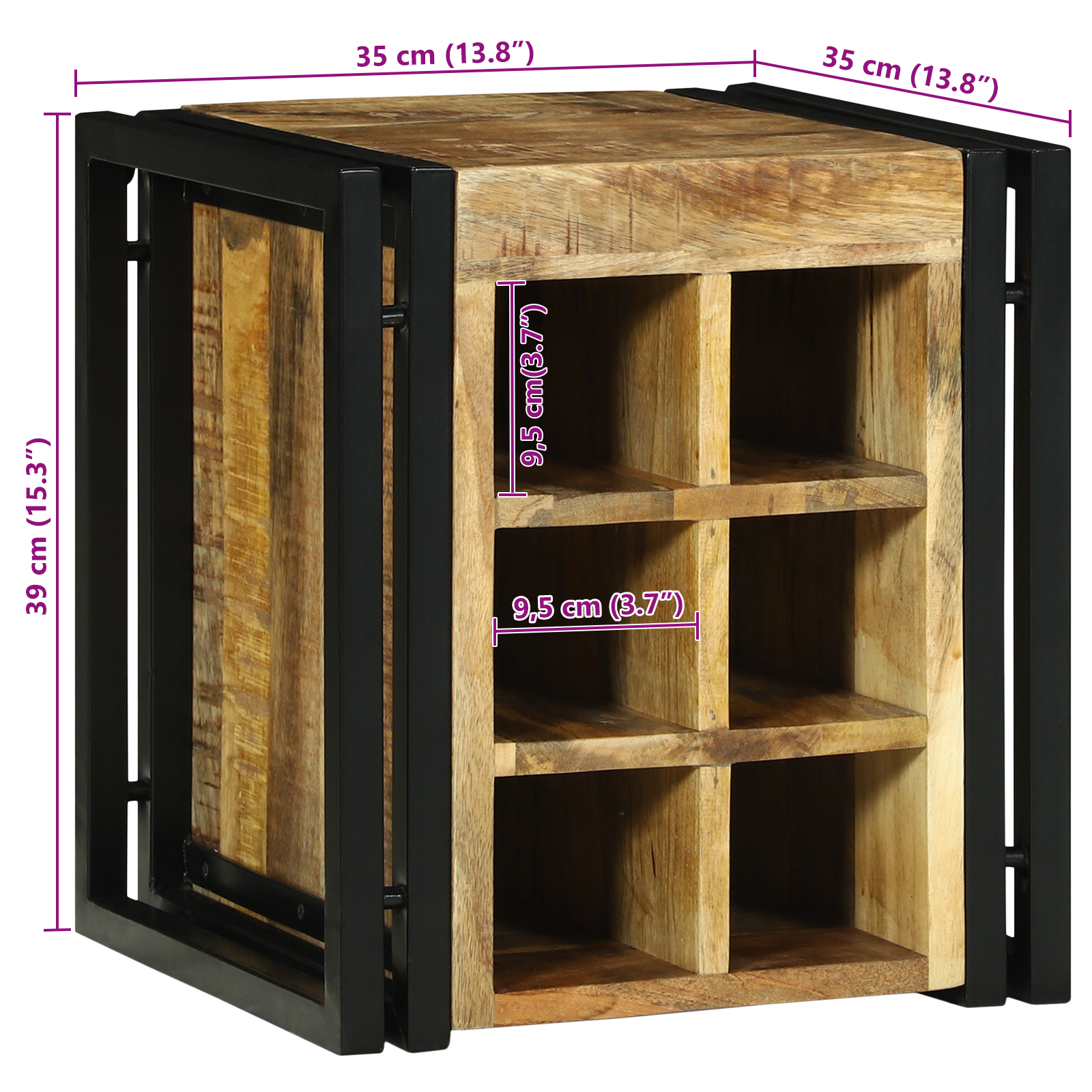 Raft de vin 34.5 x 35 x 39 cm Lemn solid Lemn de mango brut GartenMobel Dekor
