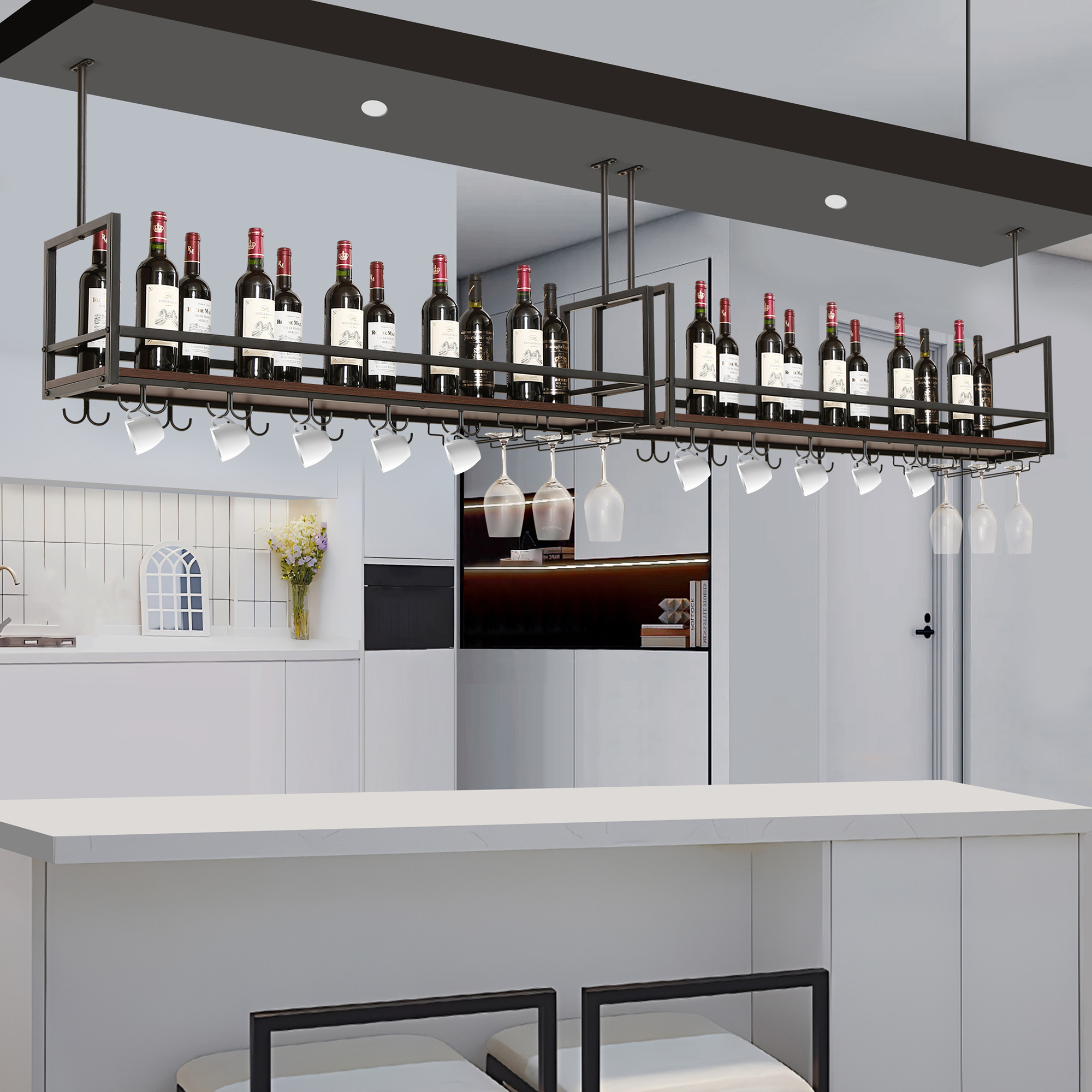 Poate fi montat deasupra insulei de bucatarie, mesei dining sau in zona de bar pentru a crea un spatiu practic si elegant. Este ideal pentru depozitarea sticlelor de vin, paharelor cu picior, cestilor sau accesoriilor de servire.