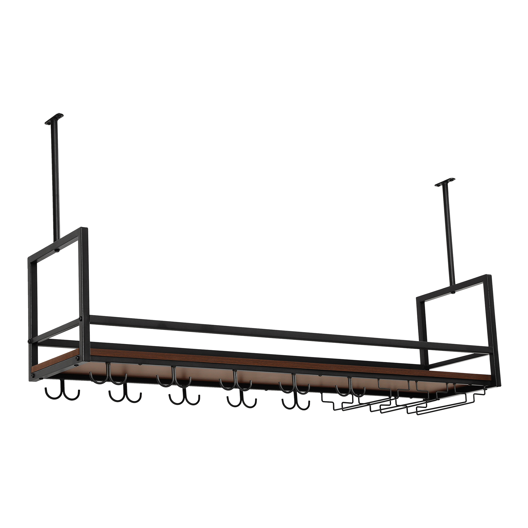 Raft de vin suspendat cu suport pentru pahare Borejle 120 cm negru nuc