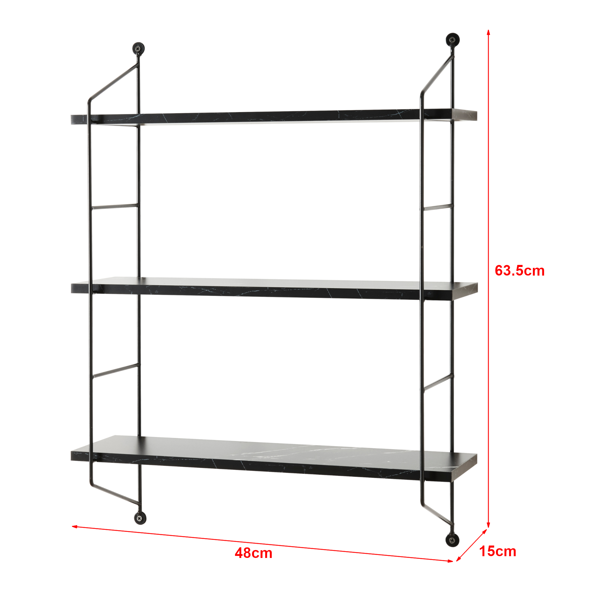 Raft, en.casa, PXWK-0009 Osel, 48 x 15 x 63,5 cm, otel, mdf, pvc, negru marmorat, montabil pe perete,cu 3 polite depozitare HausGarden Leisure