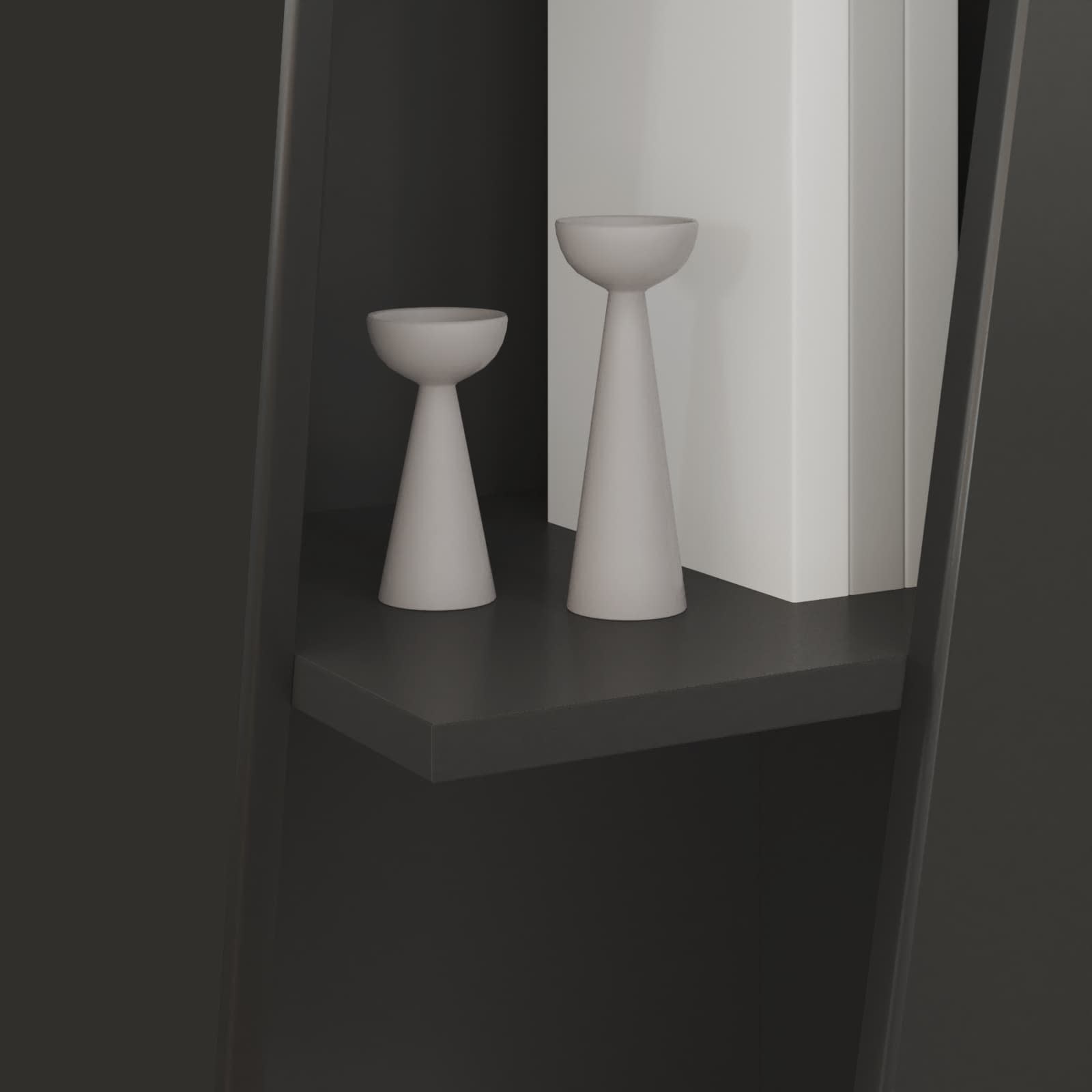 Raftul ăsta lateral modern e o piesă stilată care îmbină estetica și funcționalitatea. E perfect pentru a organiza diferite spații, se integrează fără efort în sufragerii, dormitoare sau băi, oferind o soluție elegantă cu un finisaj din lemn prelucrat. Designul minimalist cu linii simple și elegante se potrivește perfect în interioruri contemporane, ținând totul în ordine ușor de accesat. Textura lui netedă aduce un plus de estetică, făcându-l o alegere versatilă în orice decor.