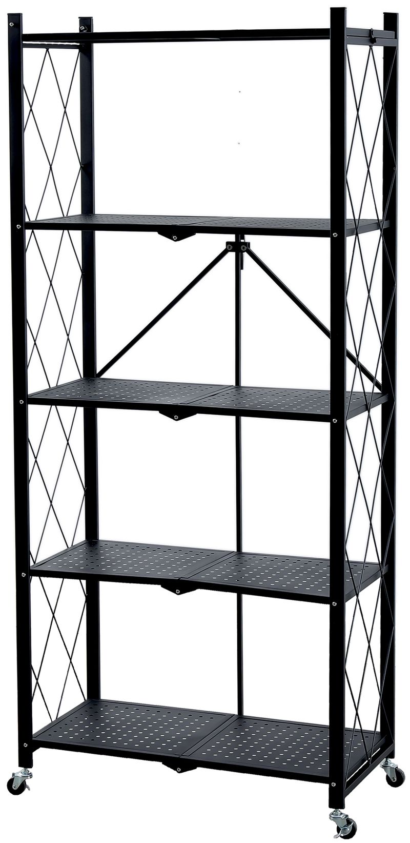 Raft metalic pliabil cu roti, 5 polite, 163x72x34 cm, 250 kg