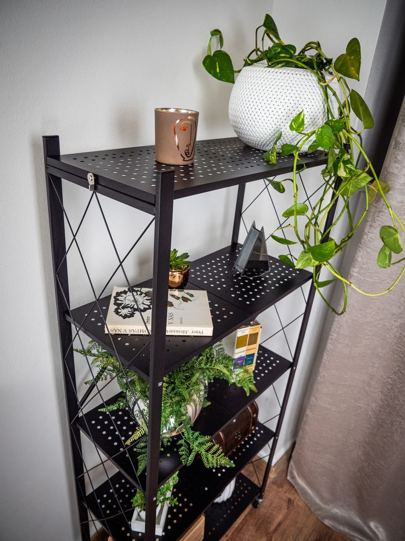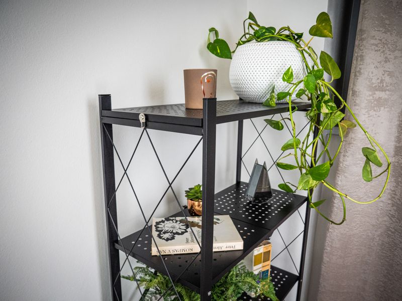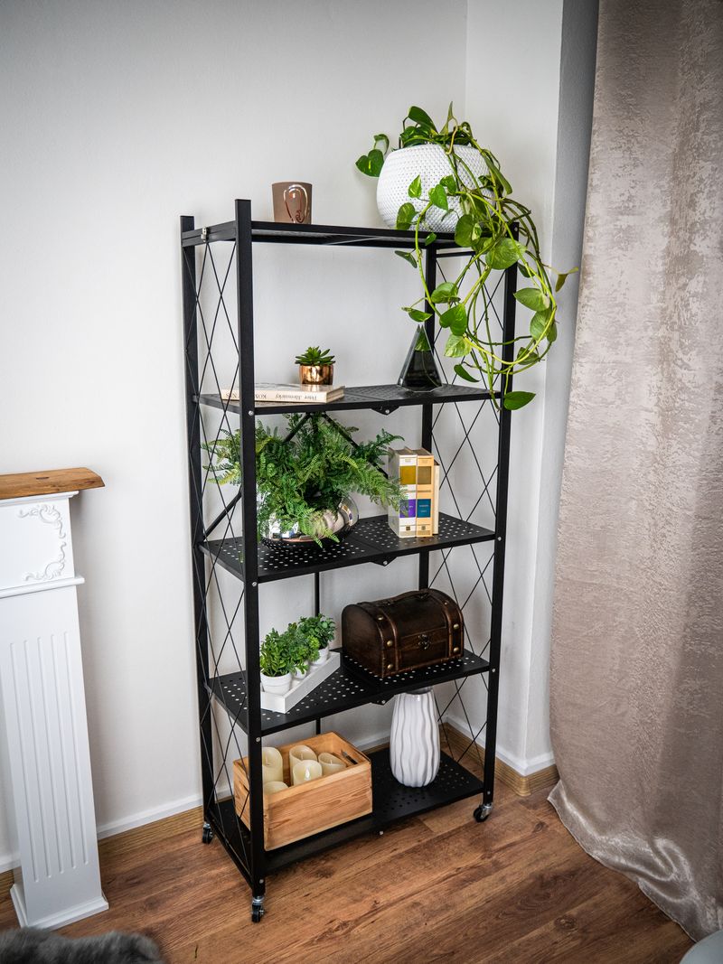 Dispune de 5 polite cu o capacitate de incarcare de pana la 50 kg/polita in conditii de distributie uniforma a greutatii, ceea ce inseamna o capacitate totala de 250 kg. Datorita sistemului pliabil, raftul poate fi strans rapid atunci cand nu este folosit, fiind ideal pentru spatii unde conteaza mobilitatea si economia de loc.