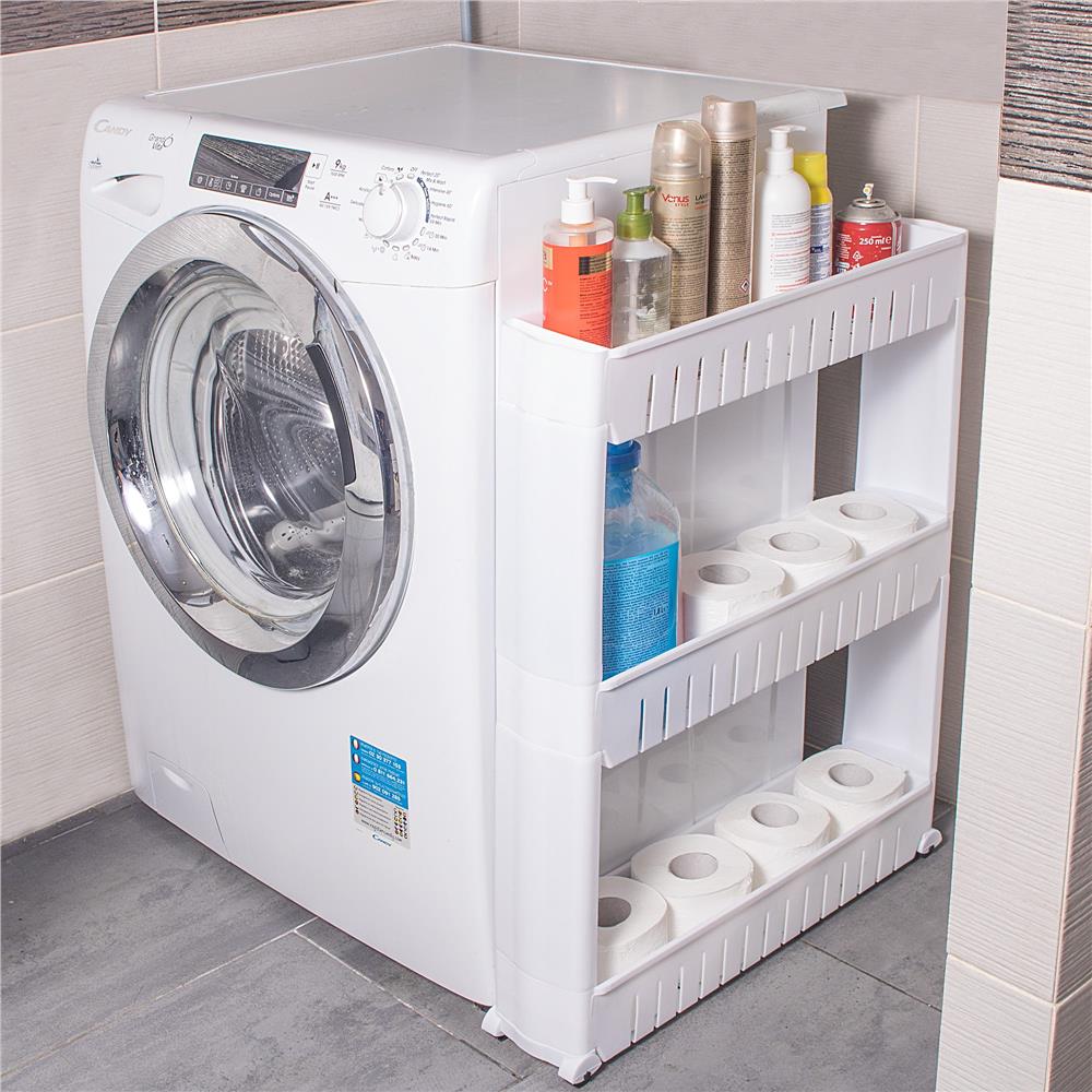 Organizeaza eficient spatiile mici cu acest raft mobil ingust Sersimo HA110, potrivit pentru baie, bucatarie, camara sau camera copilului. Designul sau slim il face ideal pentru zonele greu de folosit, cum ar fi spatiul dintre frigider si dulap sau dintre masina de spalat si perete. Cele 3 polite ofera acces rapid la produsele folosite zilnic, iar rotile permit mutarea usoara ori de cate ori ai nevoie.