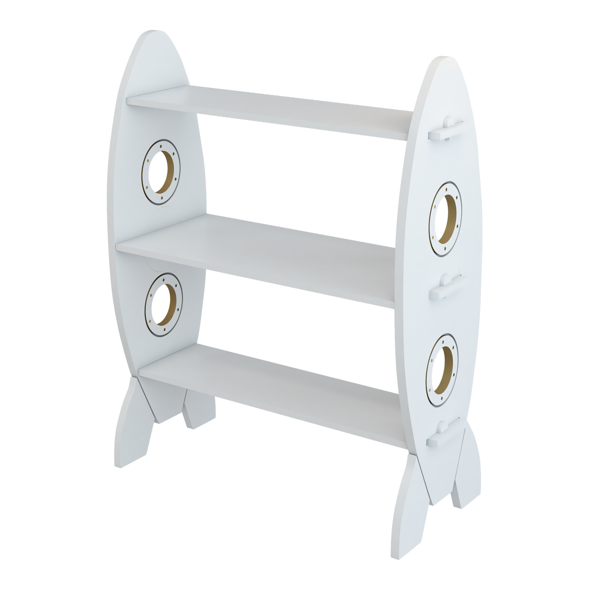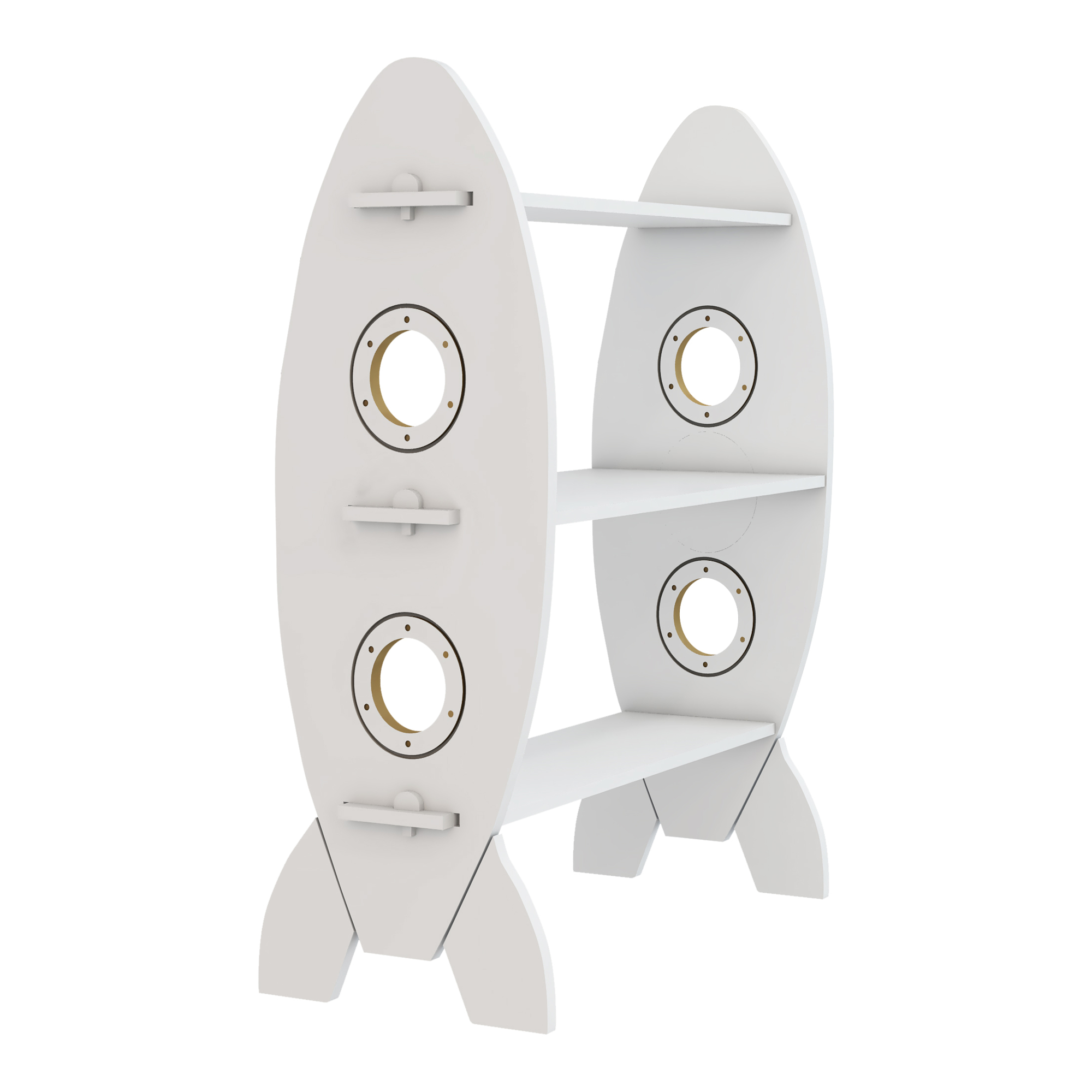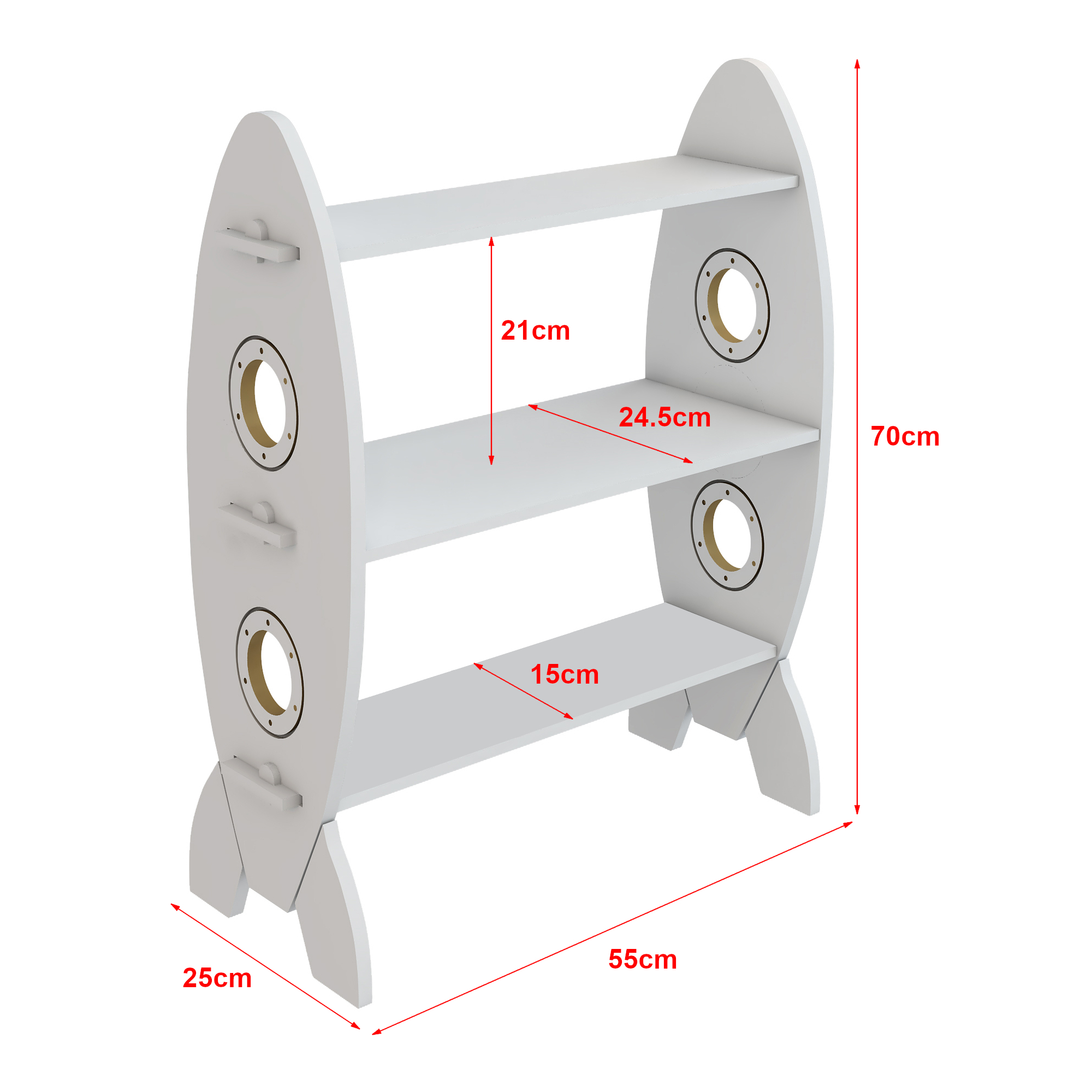 Raft pentru carti Tarnby 70 x 55 x 25 cm alb cu 3 polite model racheta [en.casa] HausGarden Leisure