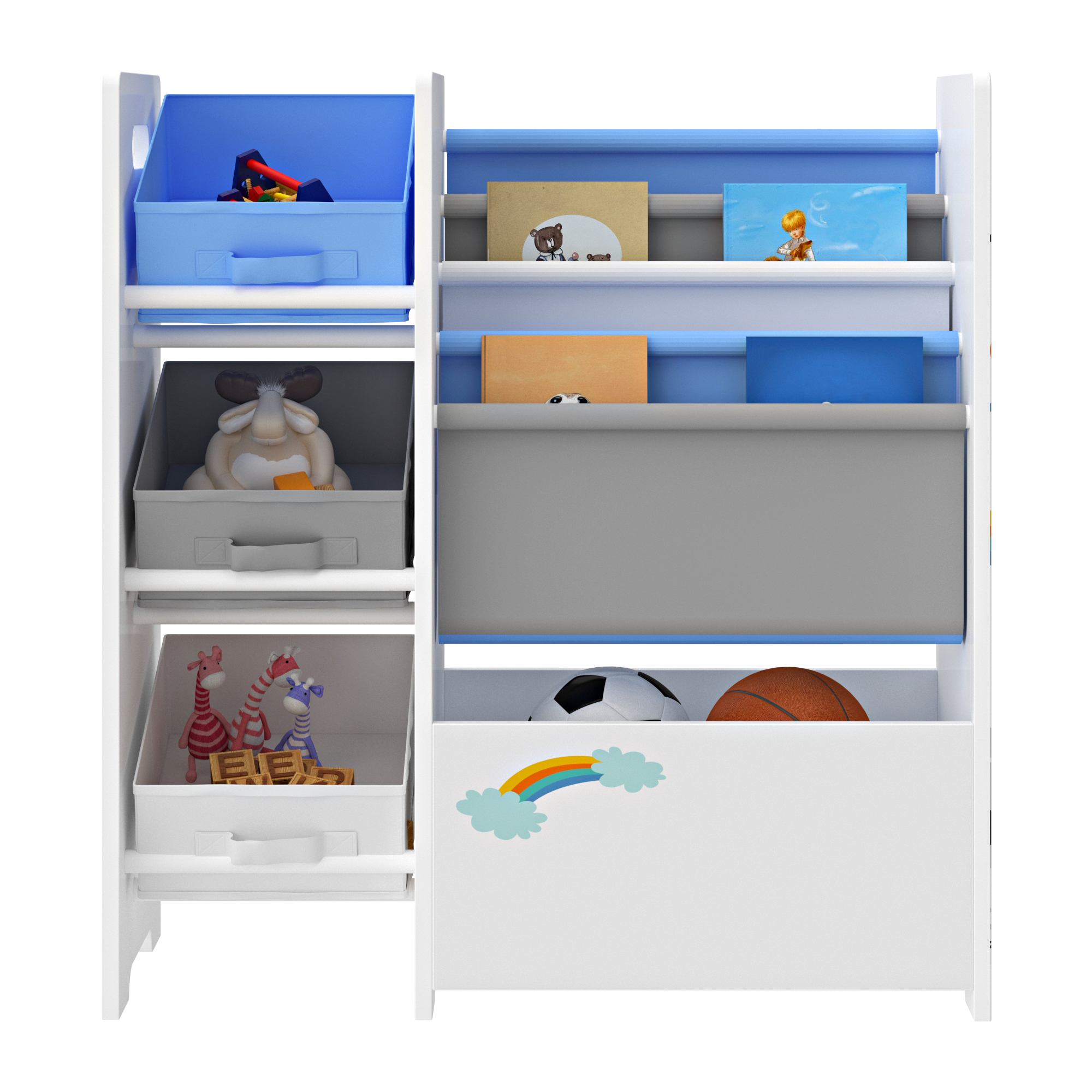 Raftul pentru copii cu model koala este o soluție practică și veselă pentru organizarea camerei celor mici. Cu un design prietenos, în nuanțe de alb, gri și albastru, acest raft copii oferă spațiu generos pentru cărți, caiete, jucării și accesorii, ajutând la păstrarea ordinii într-un mod ușor și accesibil.