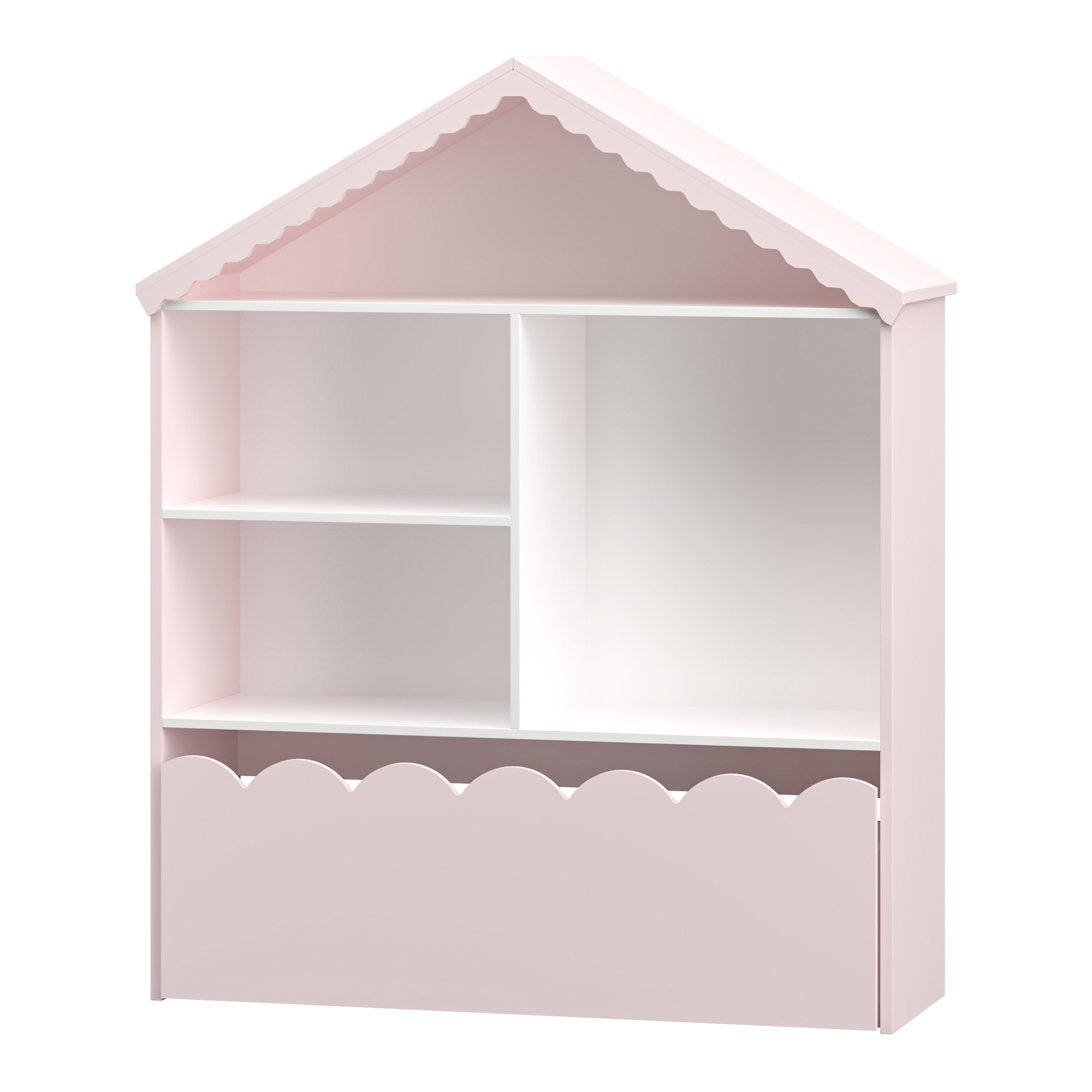 Raftul pentru copii tip căsuță Vestnes este alegerea ideală pentru o cameră de copil ordonată, veselă și ușor de organizat. Cu un design decorativ în formă de casă, în nuanțe delicate de roz și alb, acest raft copii adaugă un plus de farmec încăperii și oferă spațiu practic pentru depozitarea obiectelor preferate.