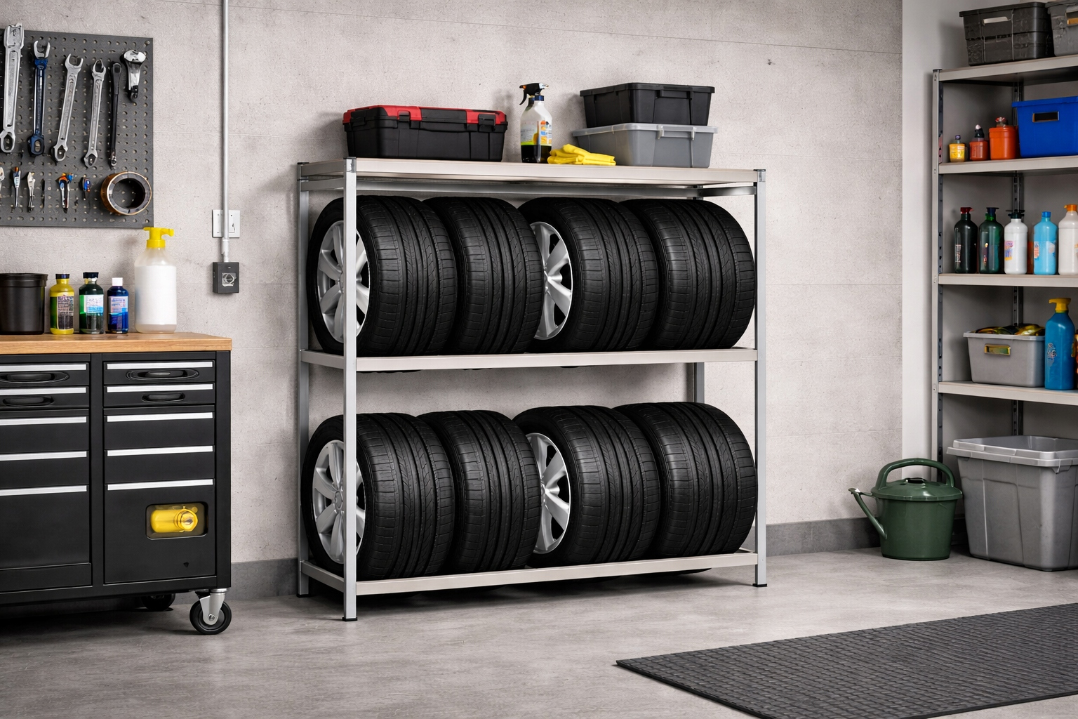 - Avantaj principal: organizare eficienta pe verticala si acces usor la anvelope