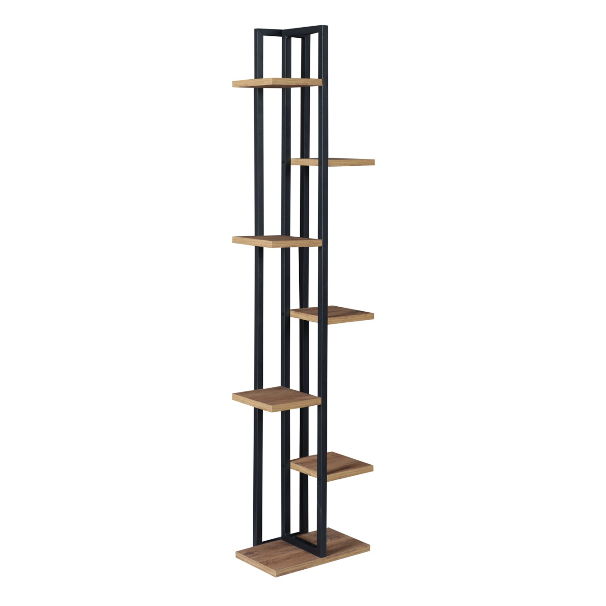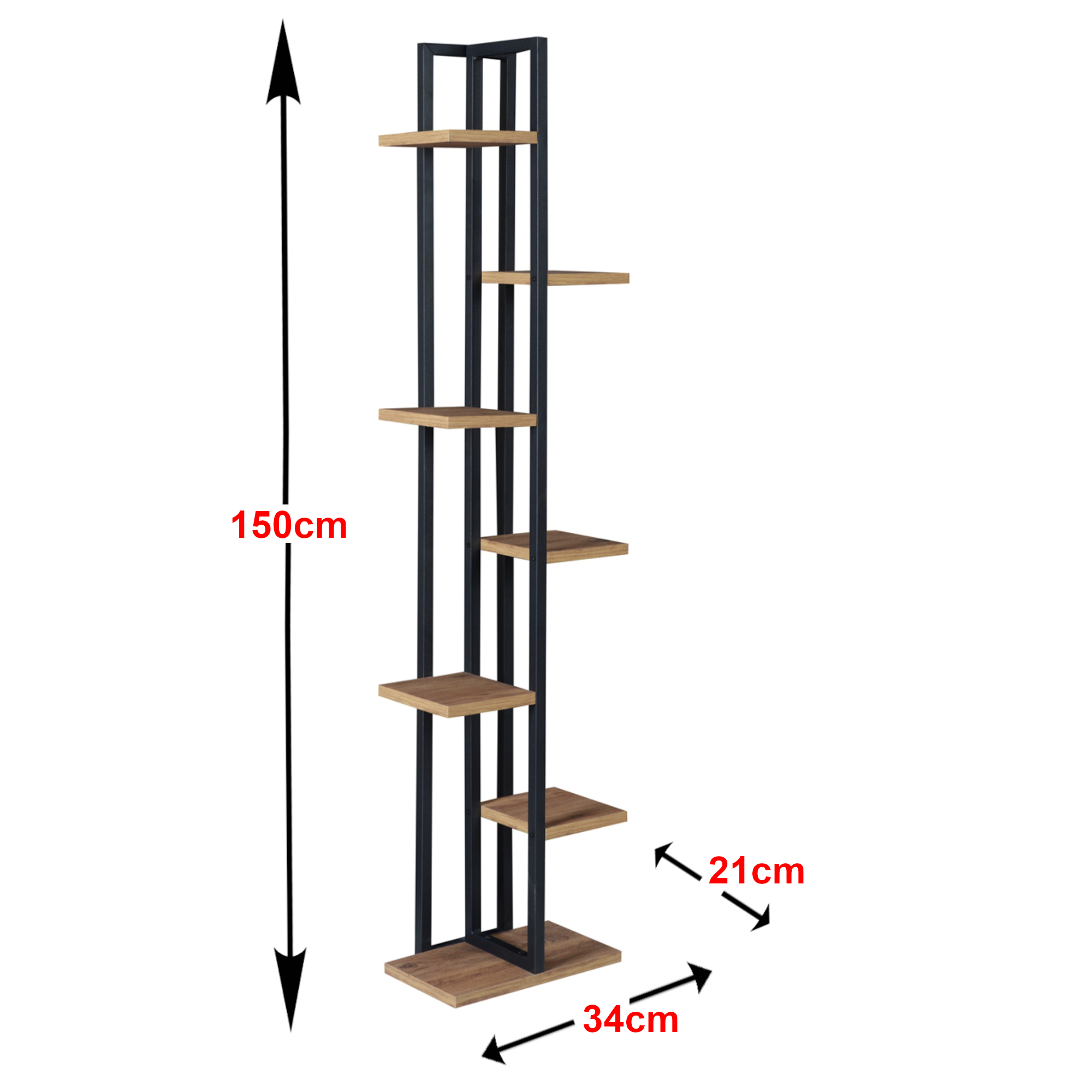 Cele 6 polițe oferă suficient loc pentru ghivece, vaze, flori decorative sau alte obiecte de decor. Construcția din metal și PAL de 18 mm asigură stabilitate, iar suprafețele sunt ușor de întreținut, pentru o utilizare confortabilă zi de zi.