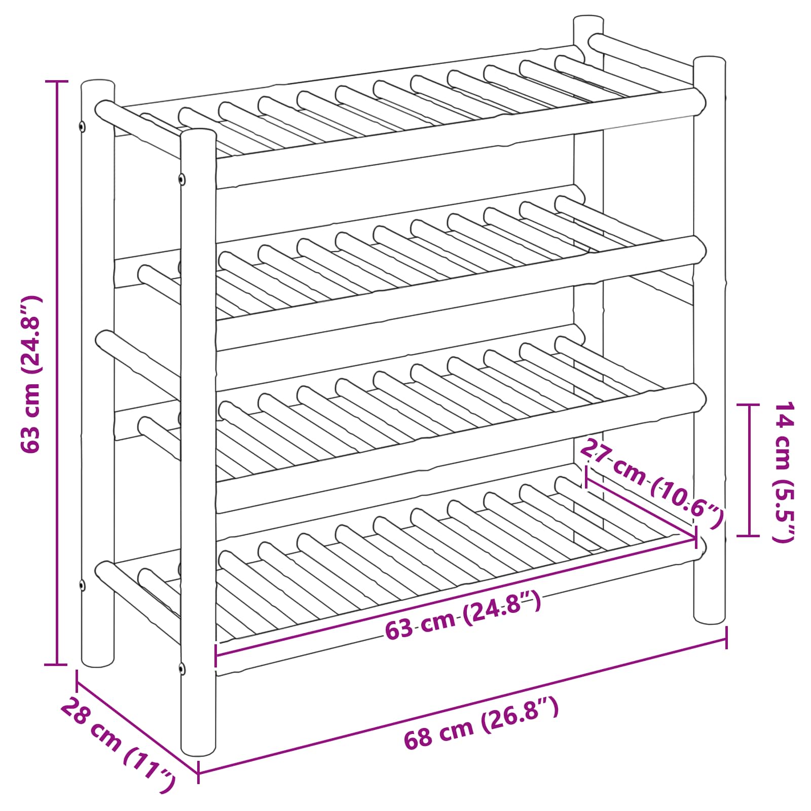 Raft pentru încălțăminte cu raft natural 68 x 28 x 63 cm Bambus GartenMobel Dekor