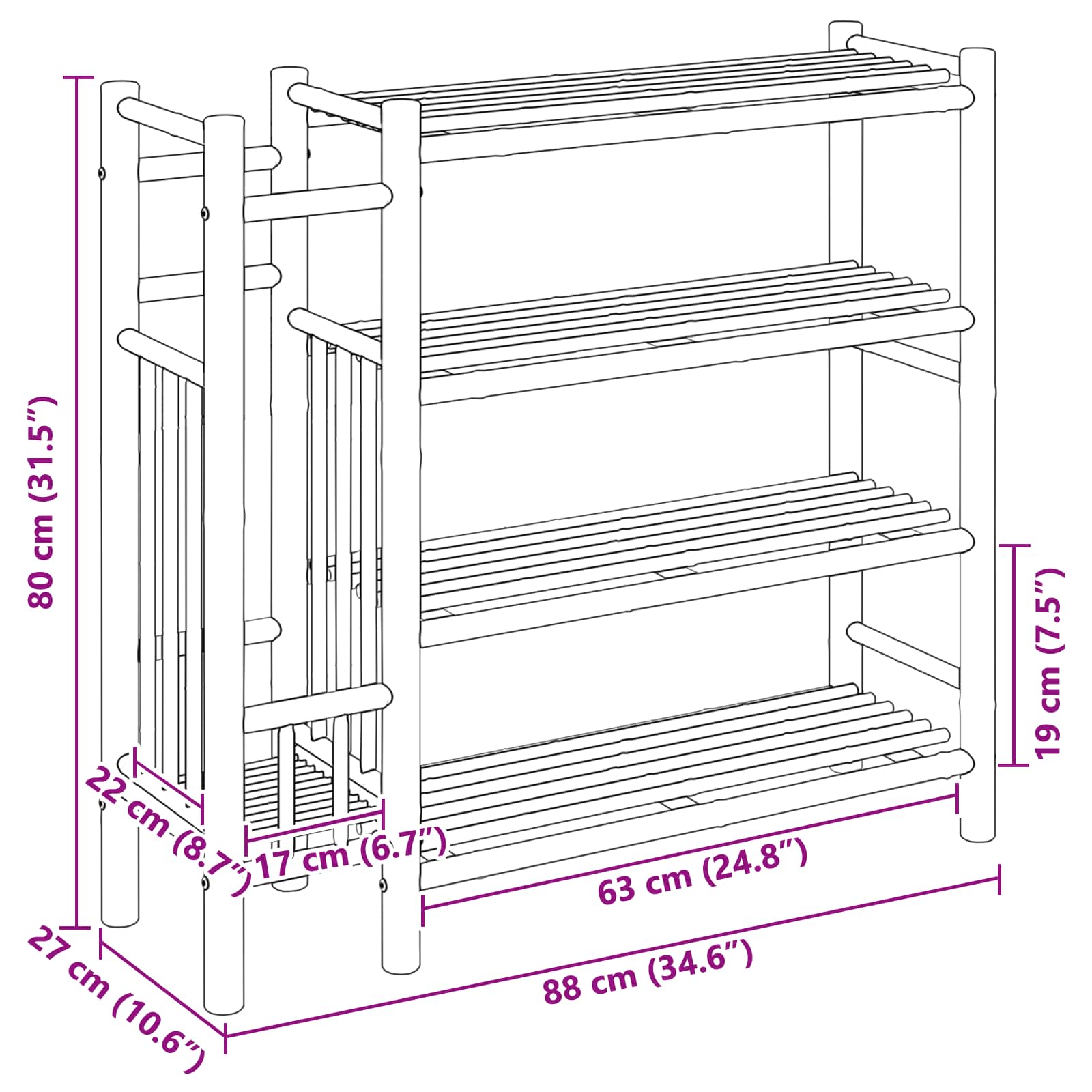 Raft pentru încălțăminte cu raft natural 88 x 27 x 80 cm Bambus GartenMobel Dekor
