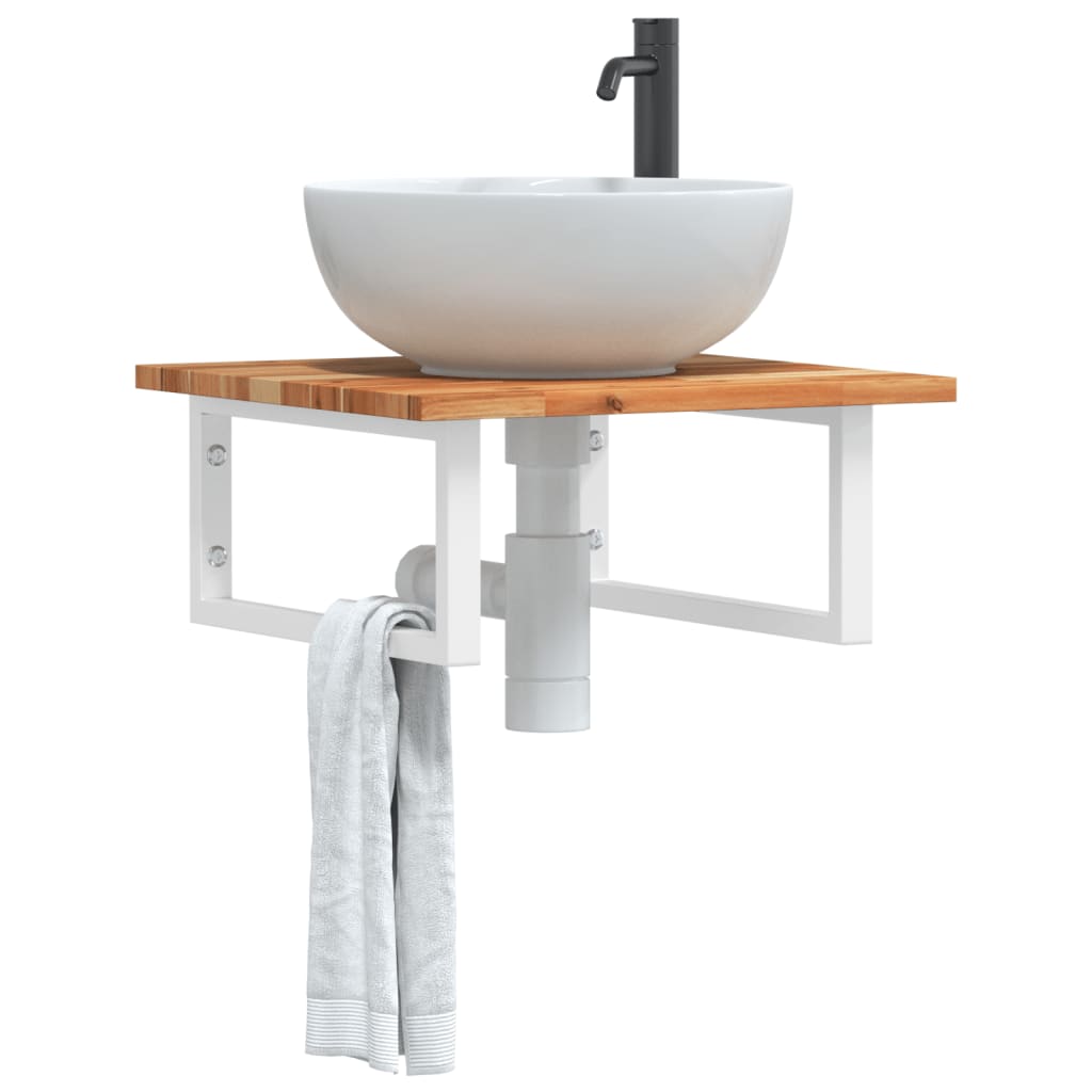 Raft pentru lavoar montat pe perete, oțel și lemn masiv acacia GartenMobel Dekor