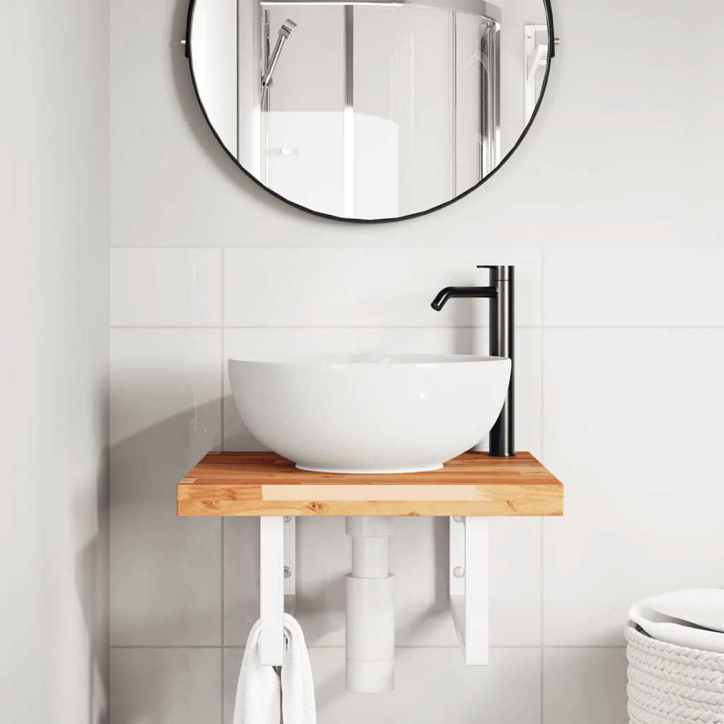 Raft pentru lavoar montat pe perete, oțel și lemn masiv acacia GartenMobel Dekor