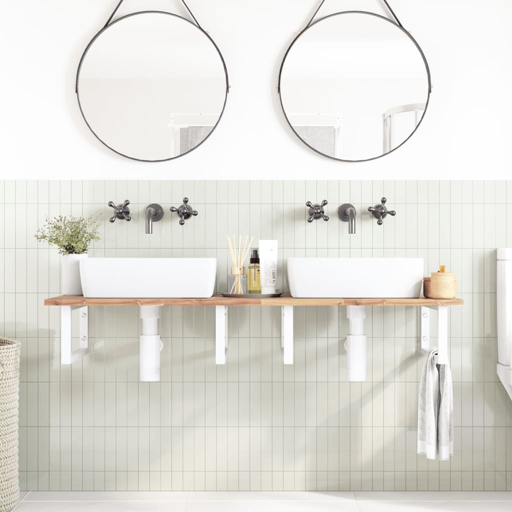 Raft pentru lavoar montat pe perete, oțel și lemn masiv acacia GartenMobel Dekor
