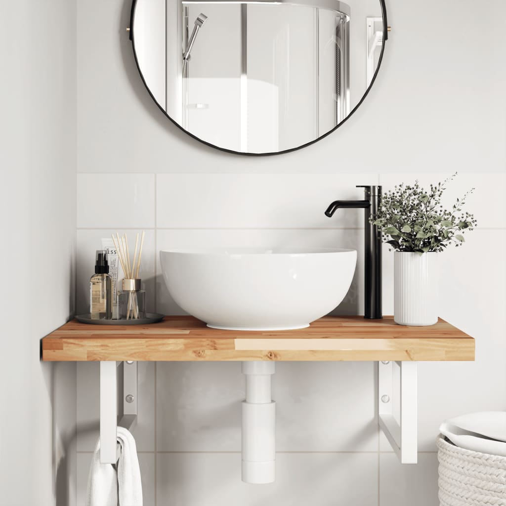 Raft pentru lavoar montat pe perete, oțel și lemn masiv acacia GartenMobel Dekor