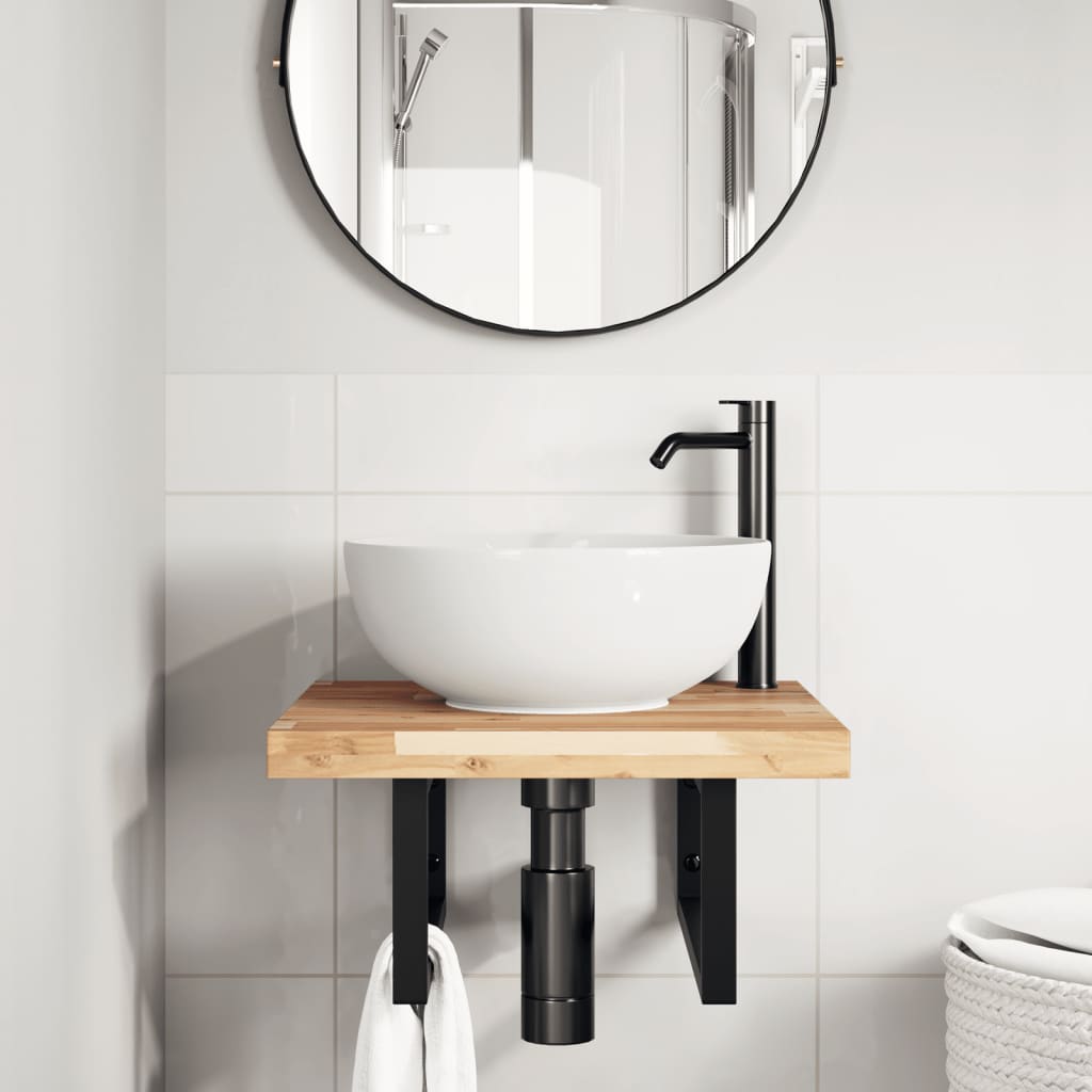 Raft pentru lavoar montat pe perete, oțel și lemn masiv acacia GartenMobel Dekor
