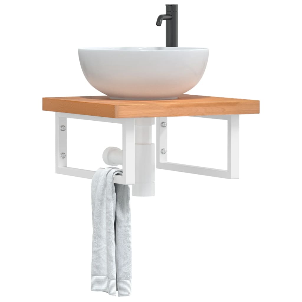 Raft pentru lavoar montat pe perete, oțel și lemn masiv fag GartenMobel Dekor