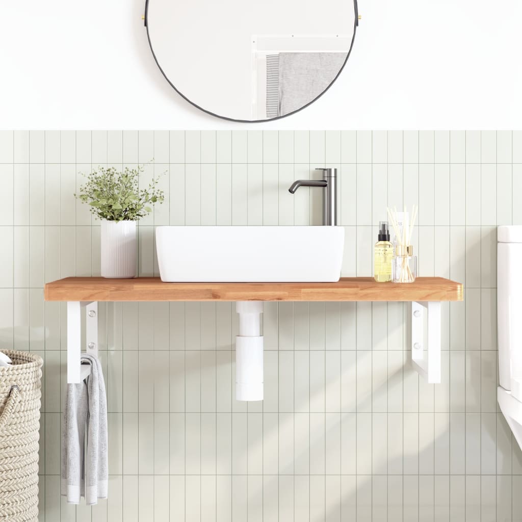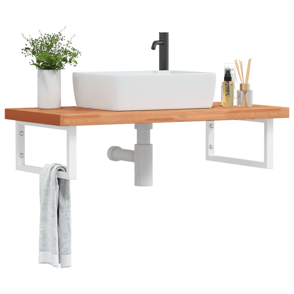 Raft pentru lavoar montat pe perete, oțel și lemn masiv fag GartenMobel Dekor