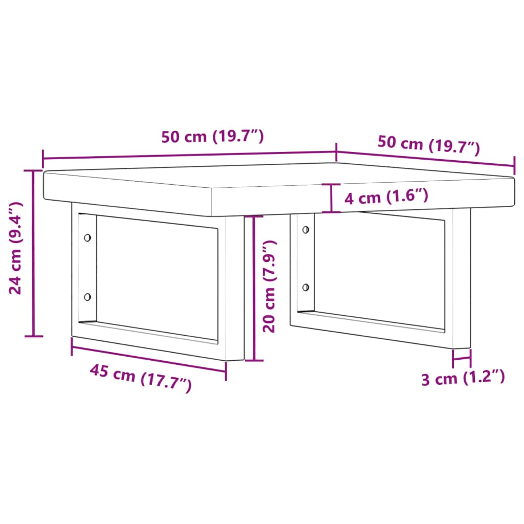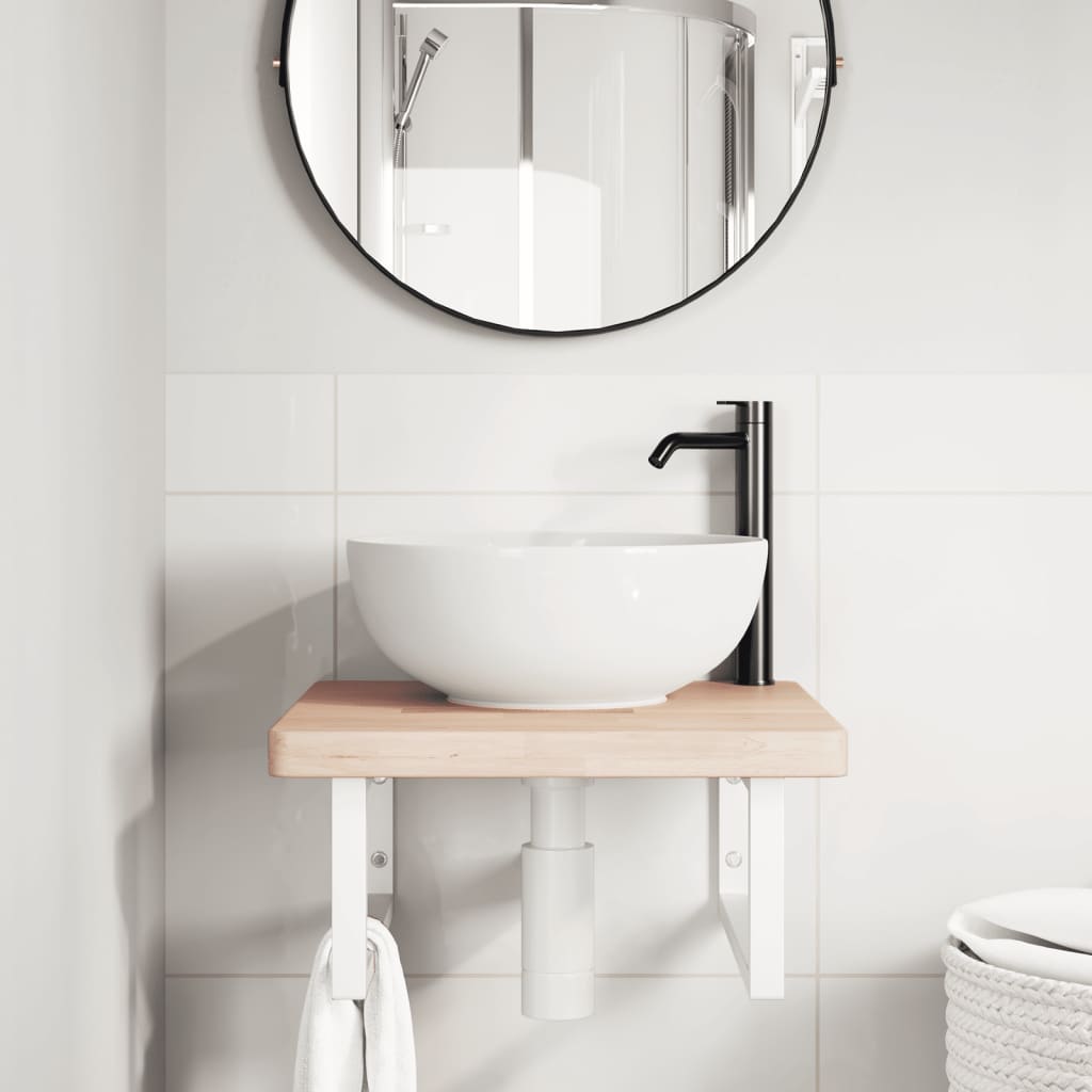 Raft pentru lavoar montat pe perete, oțel și lemn masiv stejar GartenMobel Dekor