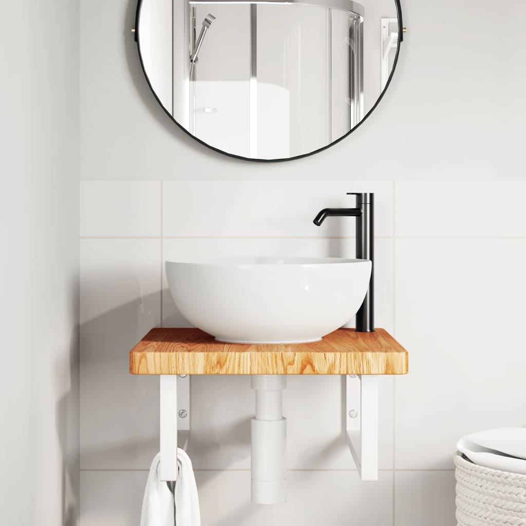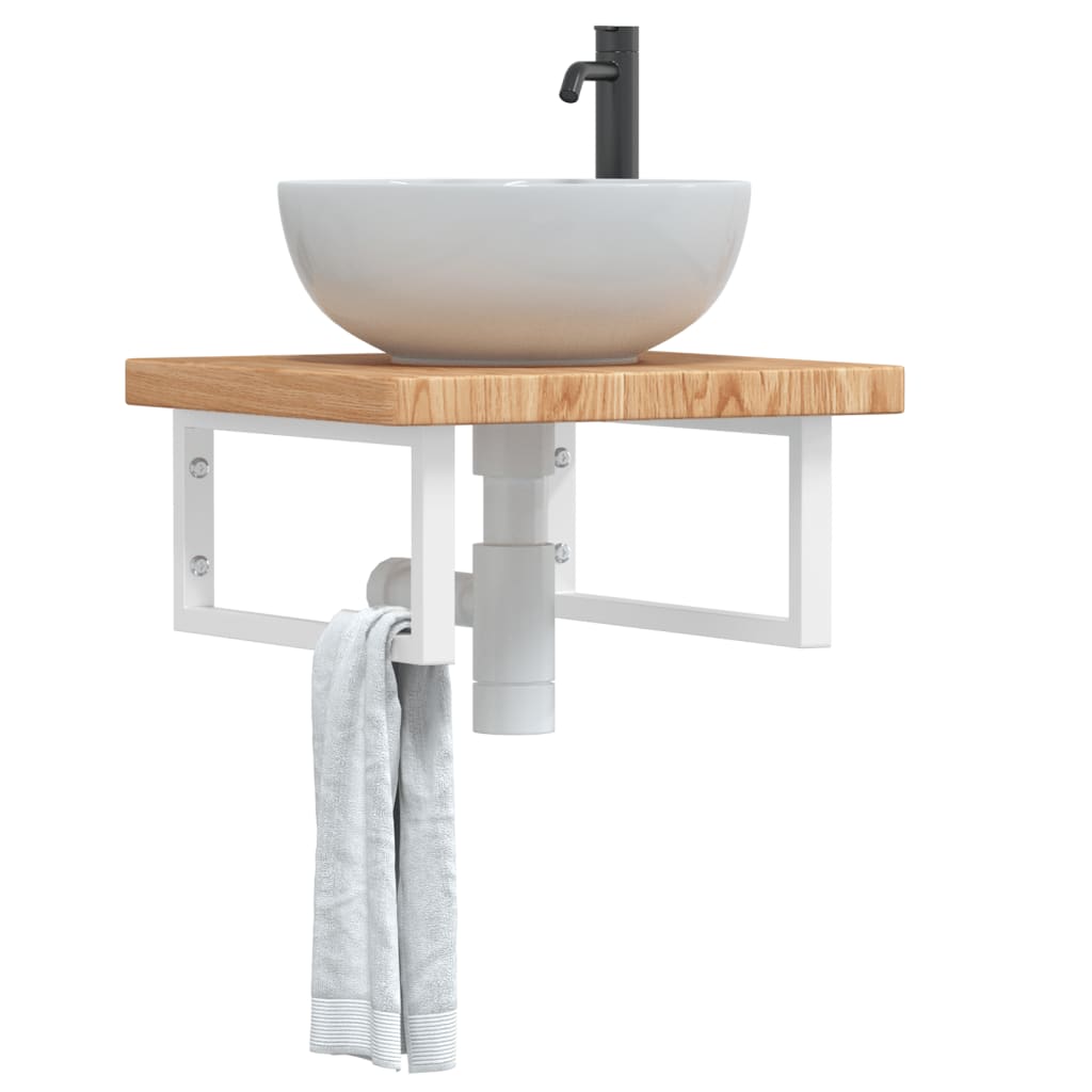 Raft pentru lavoar montat pe perete, oțel și lemn masiv stejar GartenMobel Dekor