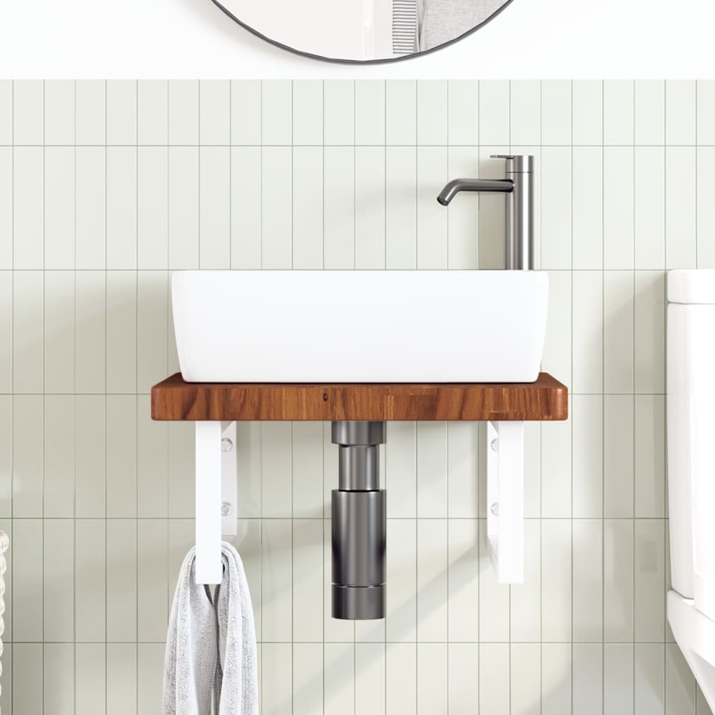 Raft pentru lavoar montat pe perete, oțel și lemn masiv stejar GartenMobel Dekor