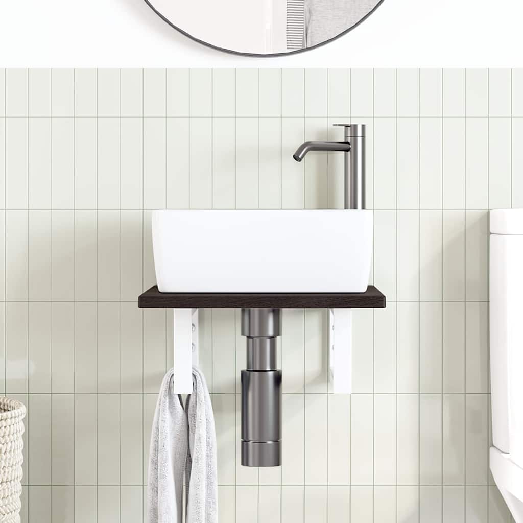 Raft pentru lavoar montat pe perete, oțel și lemn masiv stejar GartenMobel Dekor