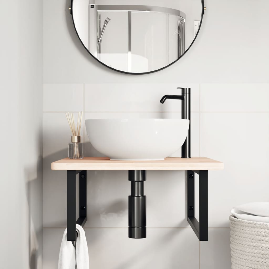 Raft pentru lavoar montat pe perete, oțel și lemn masiv stejar GartenMobel Dekor