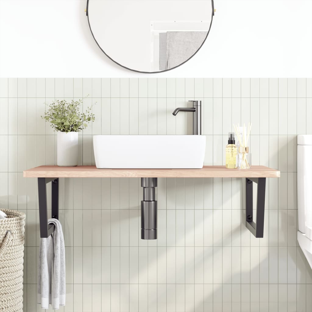 Raft pentru lavoar montat pe perete, oțel și lemn masiv stejar GartenMobel Dekor