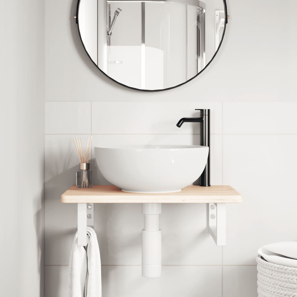 Raft pentru lavoar montat pe perete, oțel și lemn masiv stejar GartenMobel Dekor