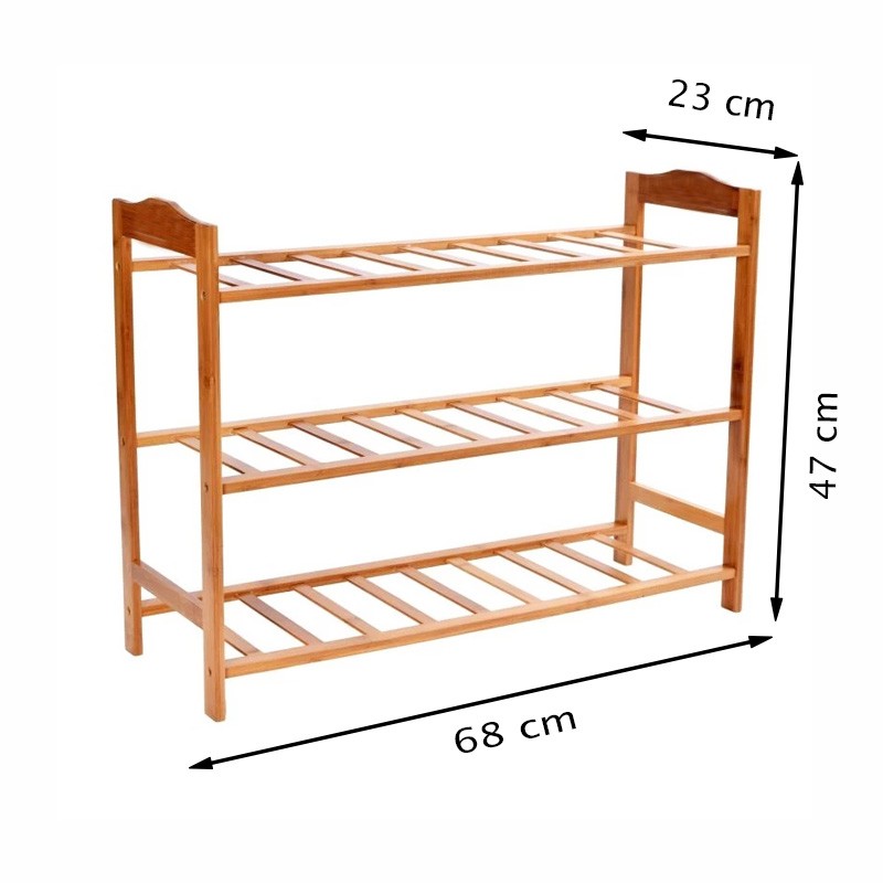 Raft pentru pantofi din bambus, 3 niveluri, 68 x 47 x 23 cm, natur
