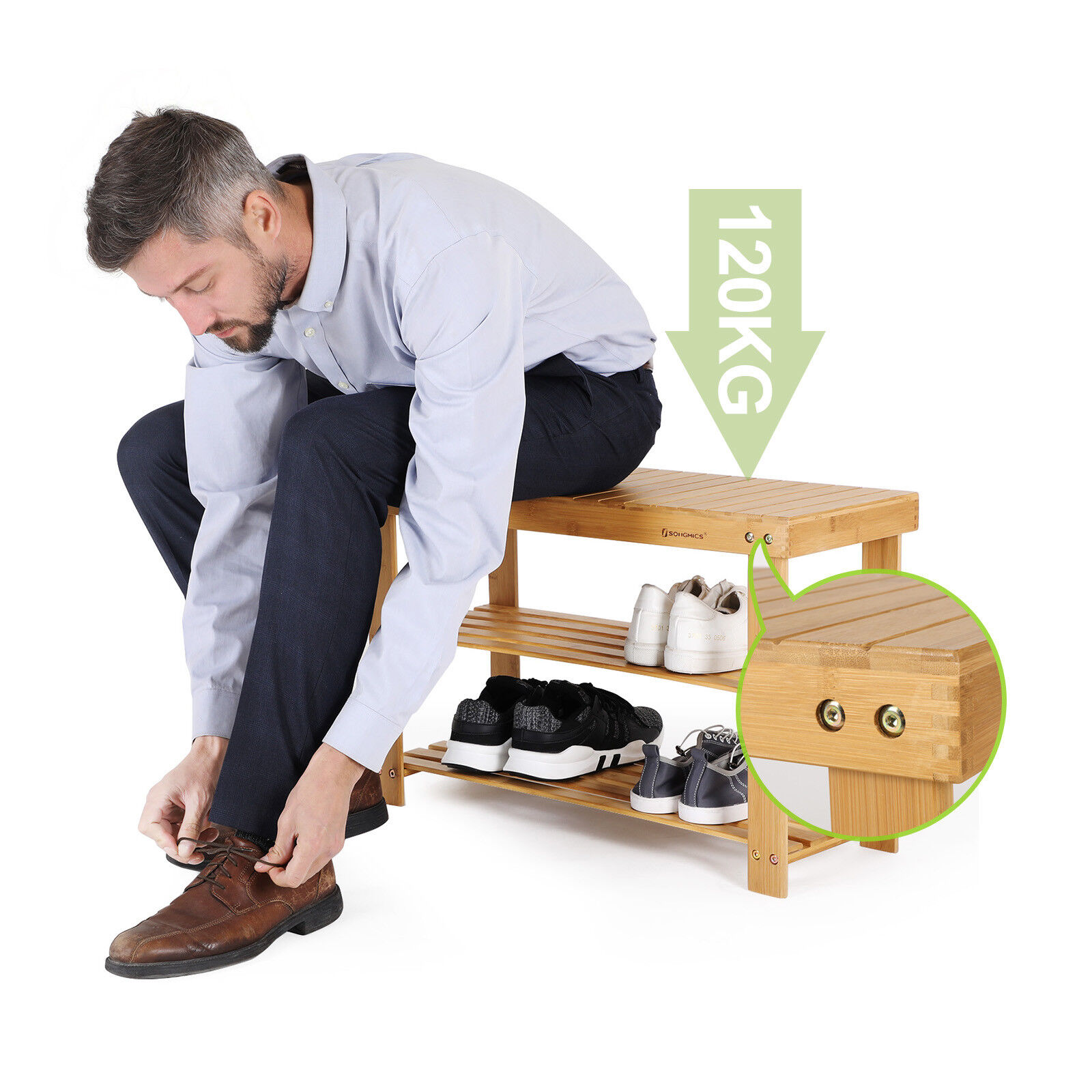 Descriere Raft pantofi bambus Songmics, 3 niveluri,