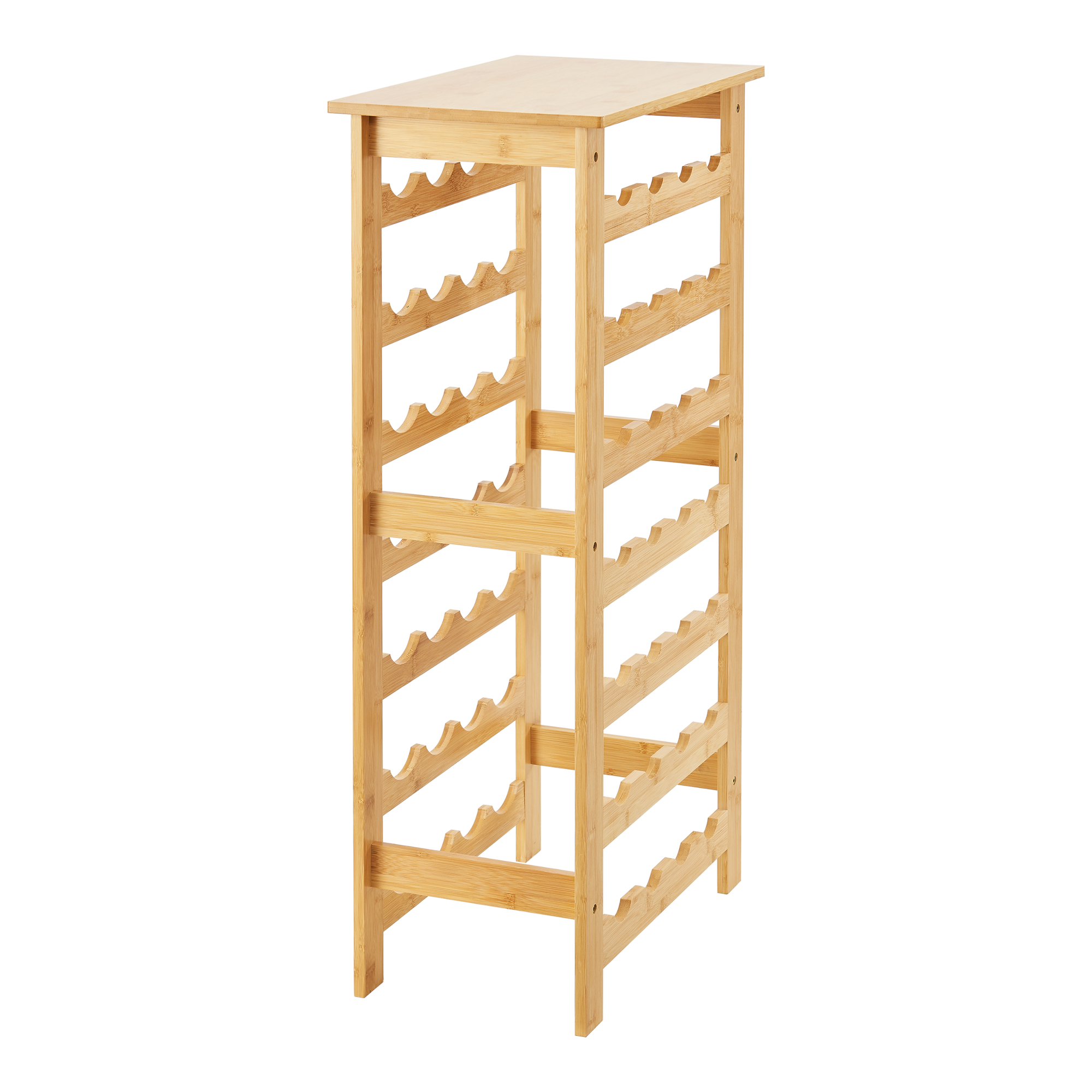 Adauga un plus de ordine si eleganta locuintei tale cu acest raft pentru vin din bambus natural. Cu un design simplu si modern, este alegerea potrivita pentru living, bucatarie, dining sau coltul tau dedicat colectiei de vinuri. Constructia pe verticala economiseste spatiu, iar sticlele sunt pastrate in pozitie orizontala pentru o depozitare practica si estetica.