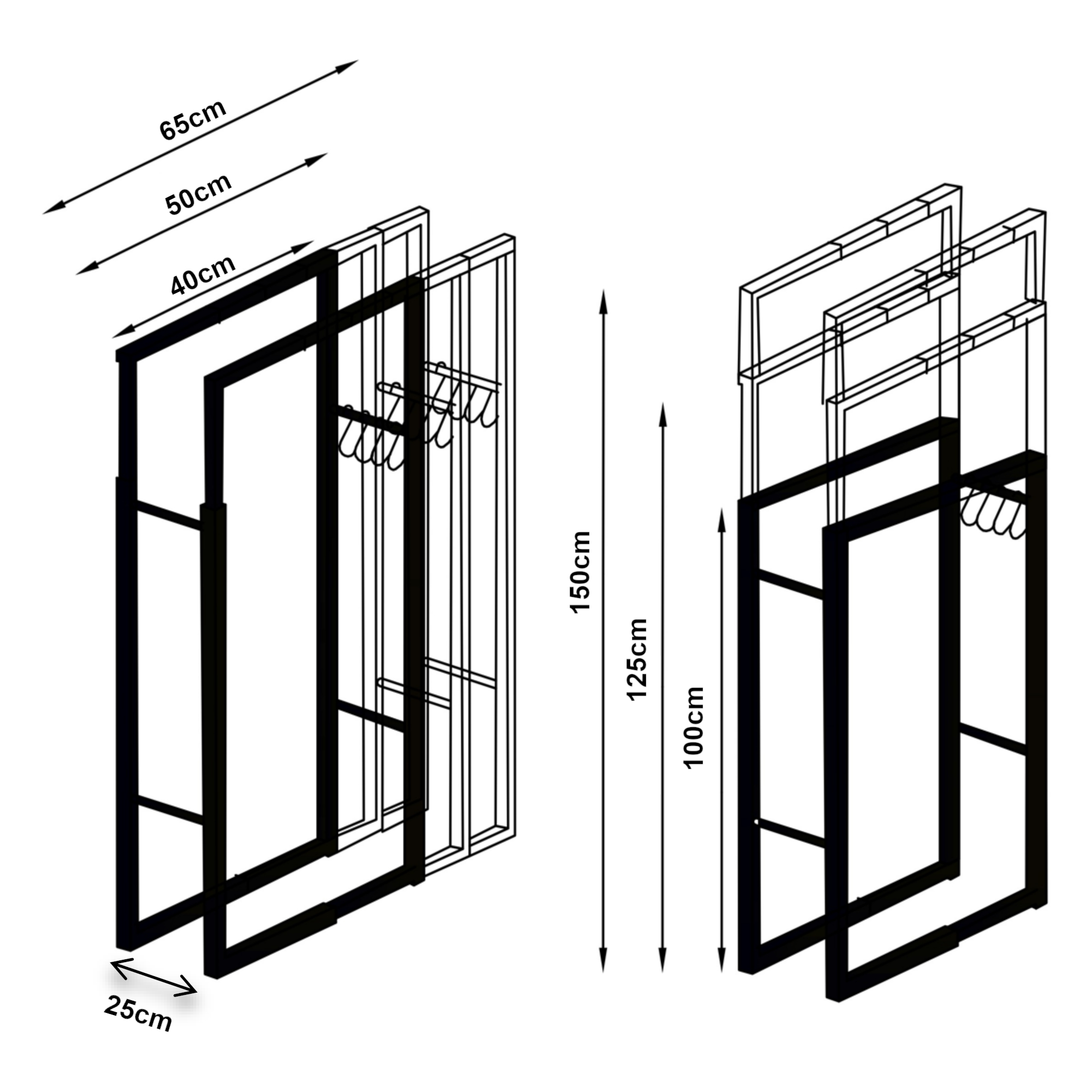 - Înălțime reglabilă: 100 / 125 / 150 cm