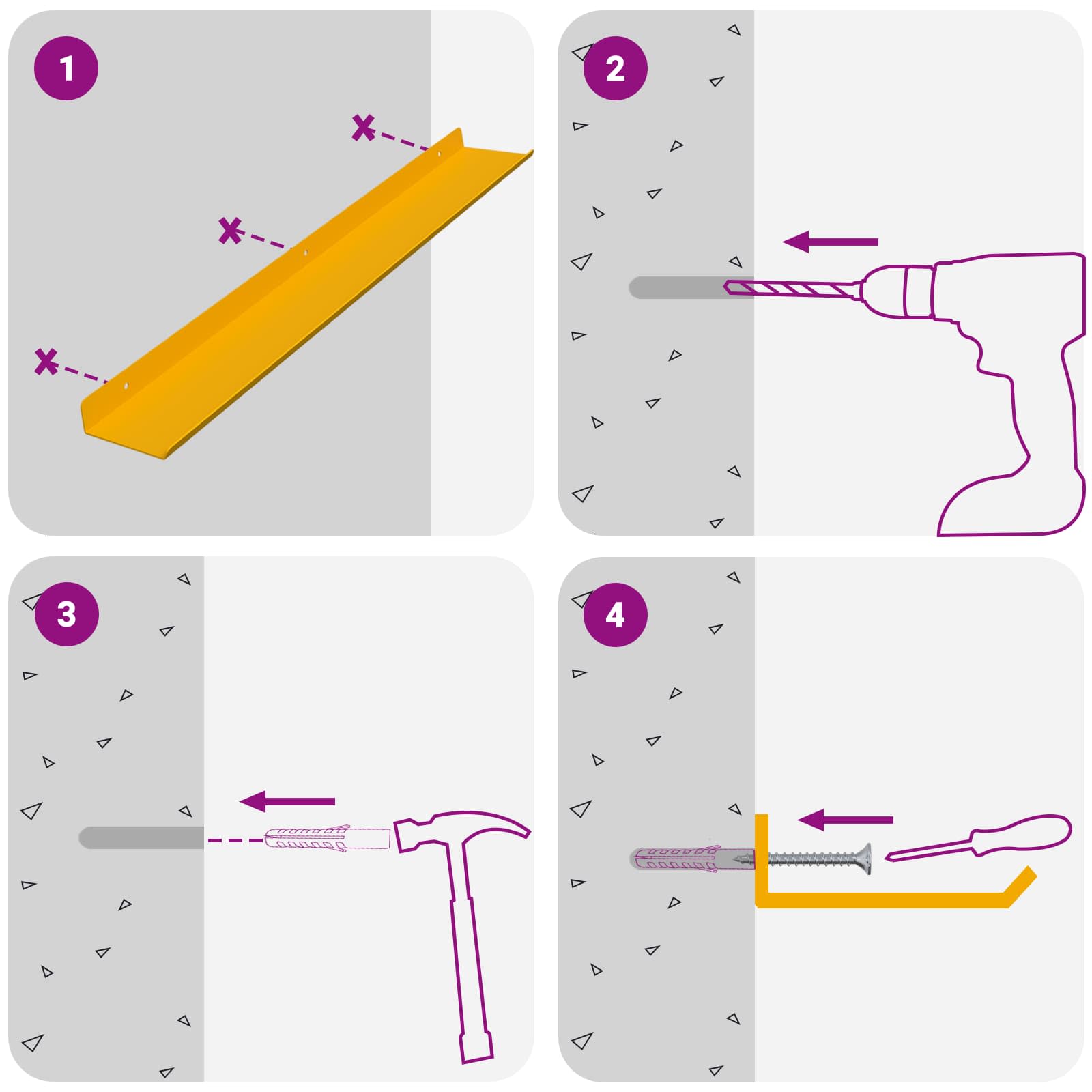 - Instalare simplă Raftul ăsta e conceput să se monteze ușor pe perete cu unelte de bază. Șuruburile nu sunt incluse, așa că alege-le în funcție de peretele tău.