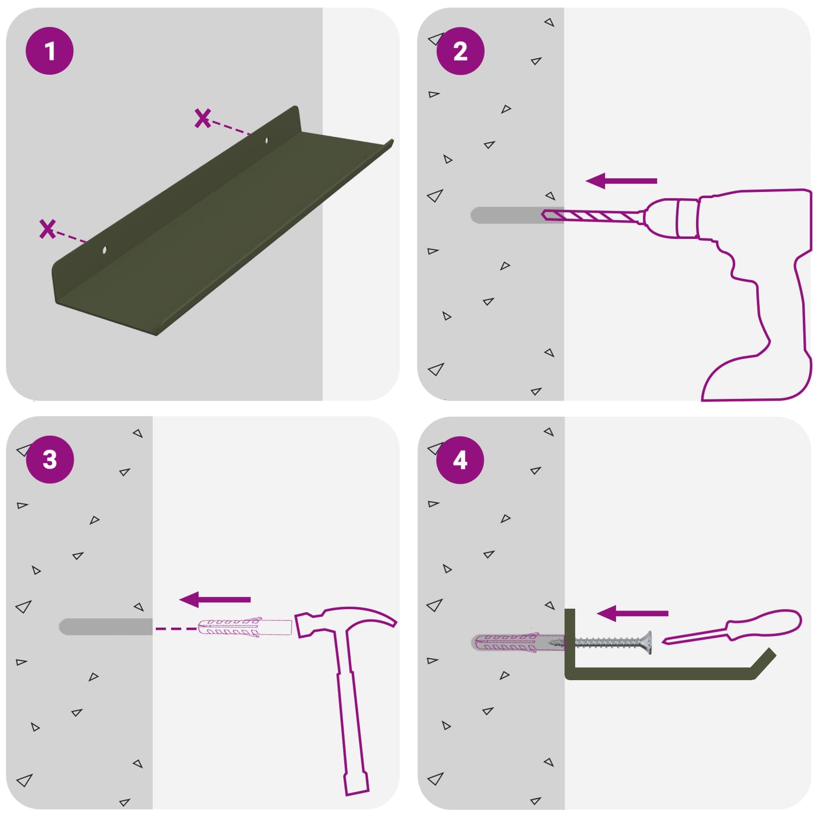 - Instalare simplă Raftul ăsta e conceput să se monteze ușor pe perete cu unelte de bază. Șuruburile nu sunt incluse, așa că alege-le în funcție de peretele tău.