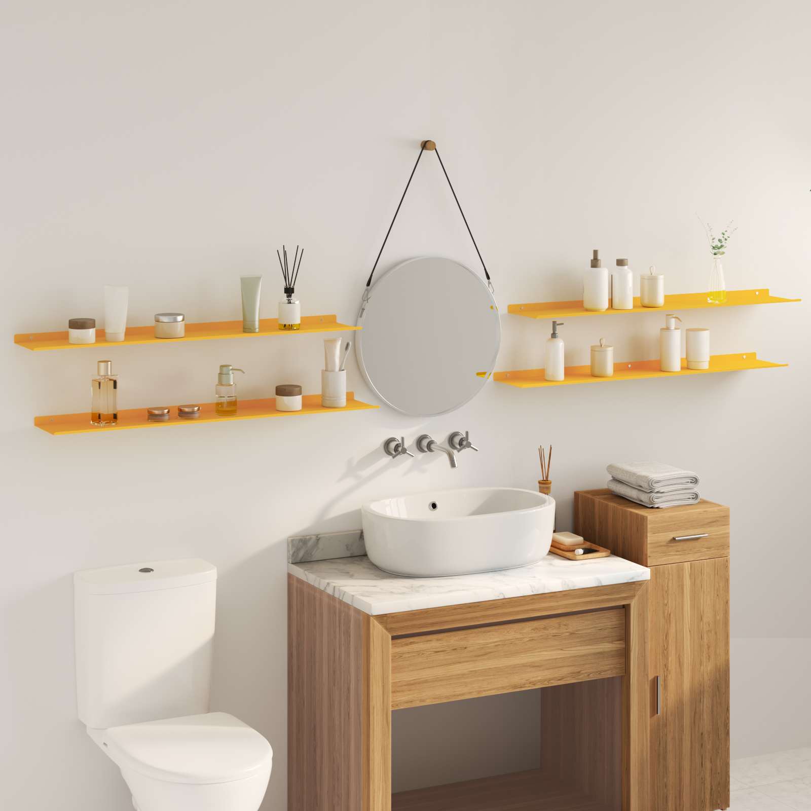 Raft suspendat 4 pcs Galben muștar 100 x 18 x 2,5 cm Oțel GartenMobel Dekor