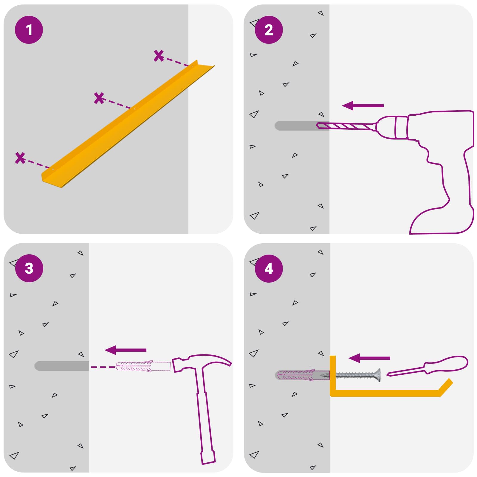 - Screws and plugs for inside the wall are not included We advise to find and use screws and plugs suitable specifically for your walls