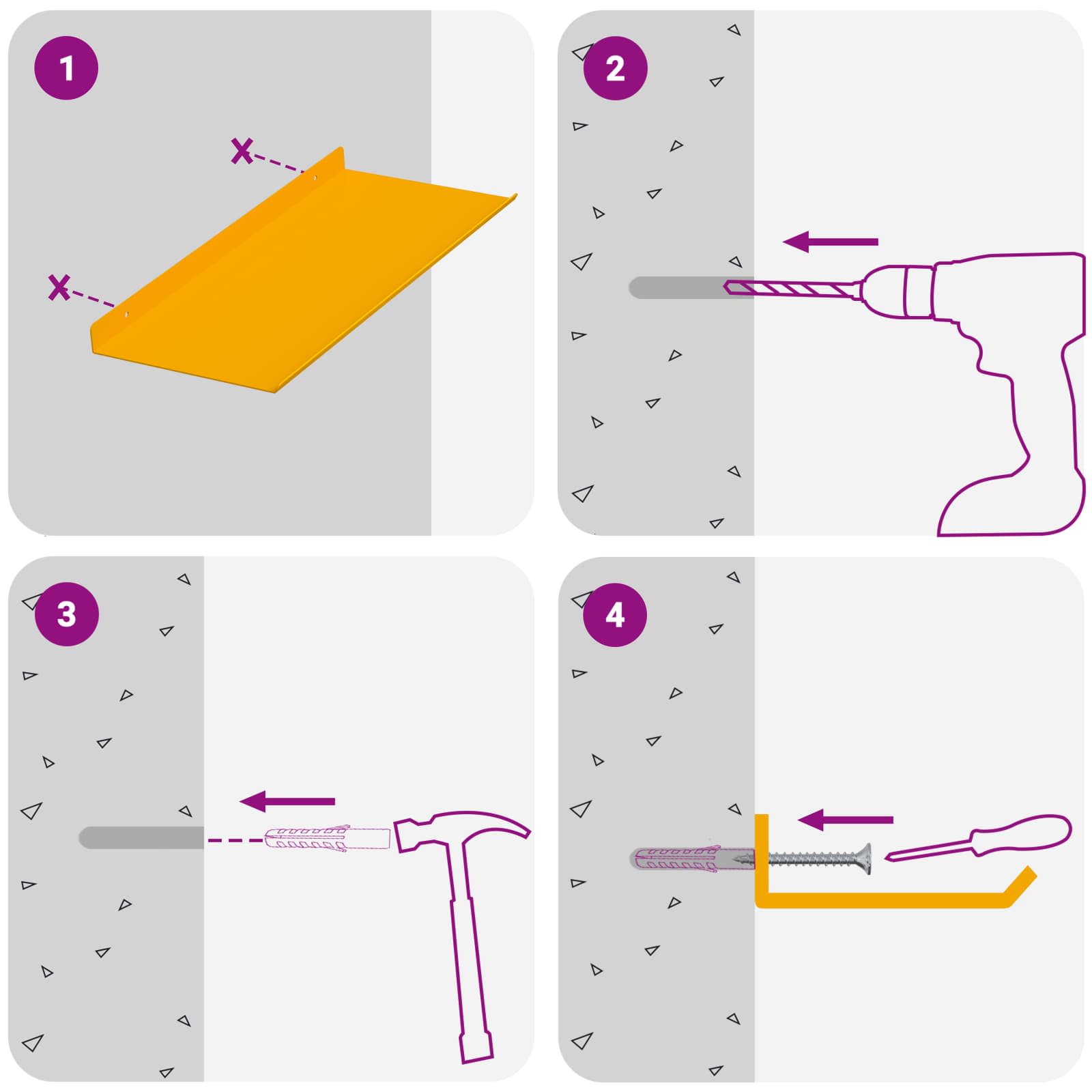 - Instalare simplă Raftul ăsta e conceput să se monteze ușor pe perete cu unelte de bază. Șuruburile nu sunt incluse, așa că alege-le în funcție de peretele tău.