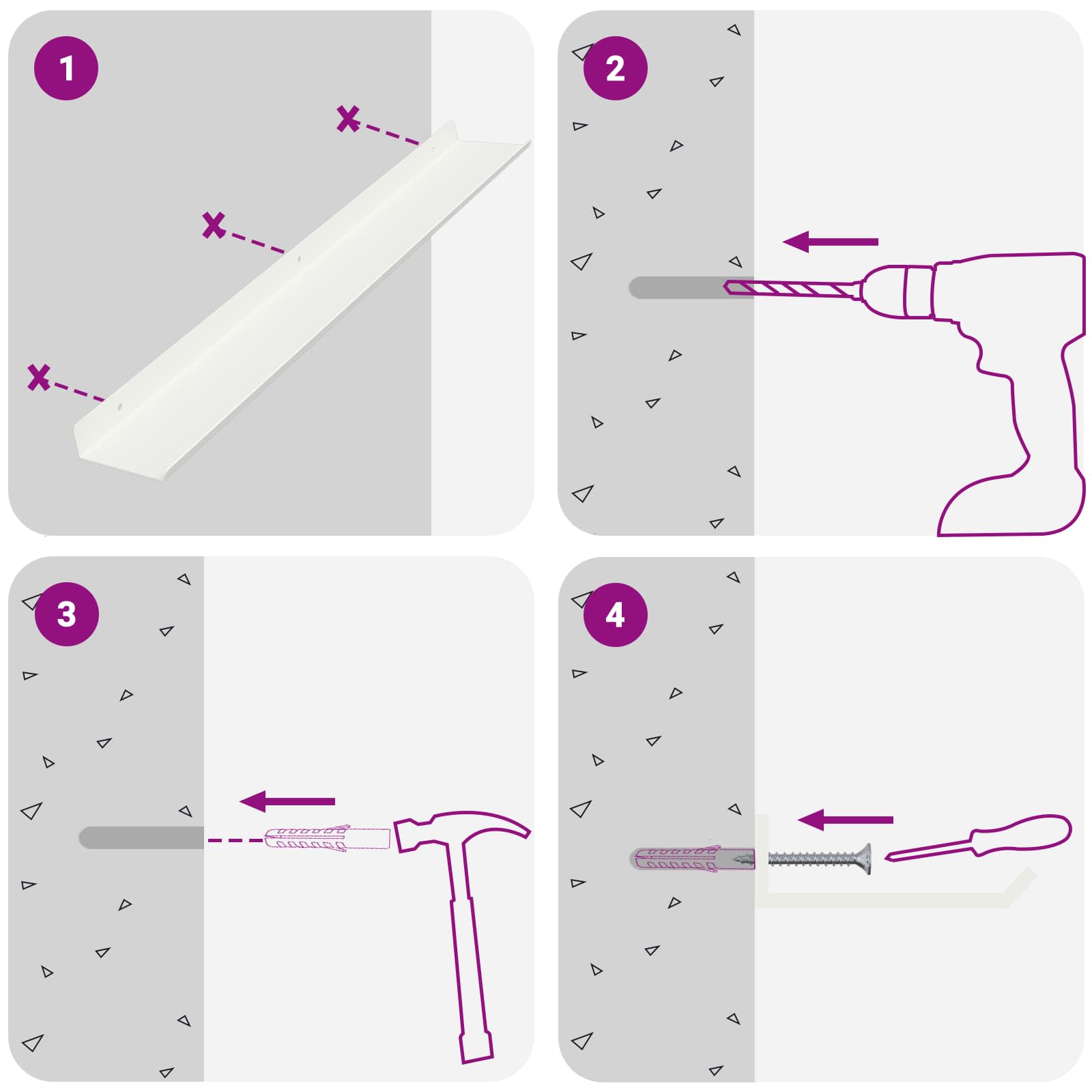- Screws and plugs for inside the wall are not included We advise to find and use screws and plugs suitable specifically for your walls