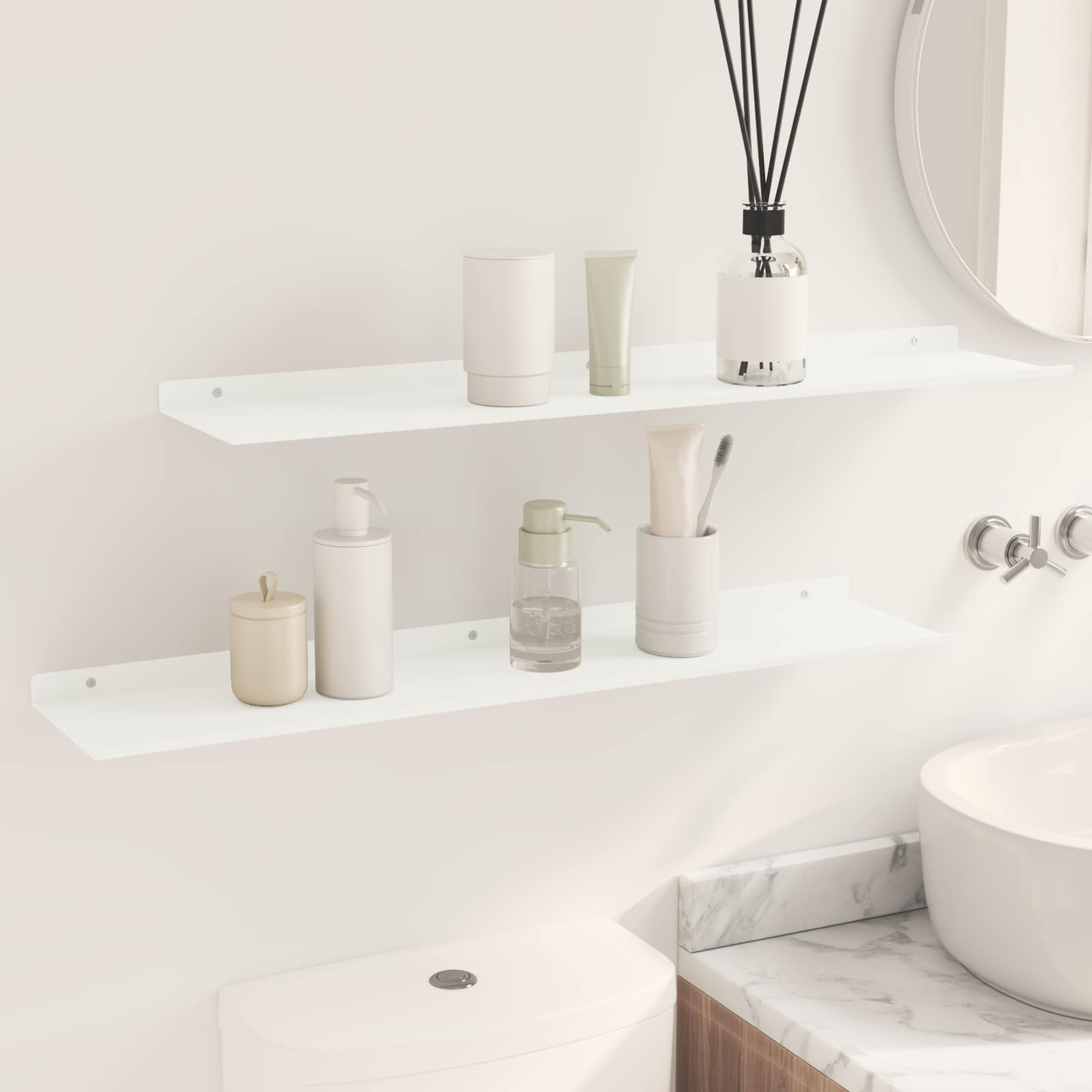 Raft suspendat Pe perete 2 pcs Alb 80 x 18 x 2,5 cm Oțel GartenMobel Dekor